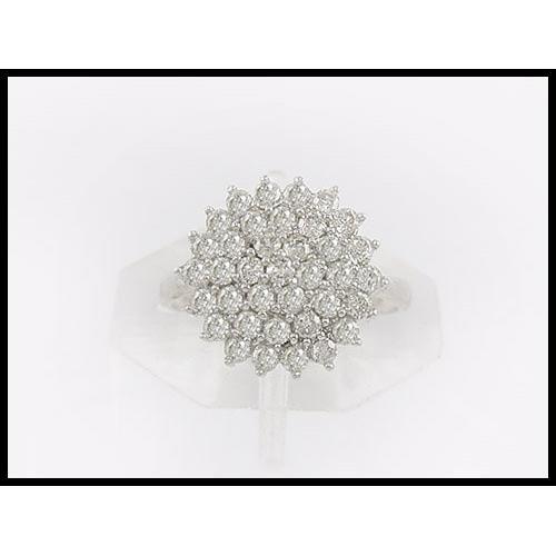 White diamonds that sparkle as diamonds should. Photo does no justice to this 18K white gold ring. 37 sparkling diamonds total at least a carat or more. Size 6 1/4 is easy to change. The cluster of diamonds measures 15mm 9/16") in diameter.