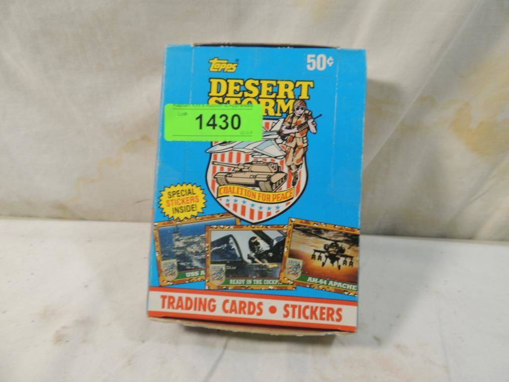 VENDORS BOX, DESERT STORM TRADING CARDS STICKERS, 36 CT PACKS, WAX PACKS, VINTAGE COLLECTORS TRADING CARDS AS SHOWN SEE PHOTO FOR MORE DETIALS.