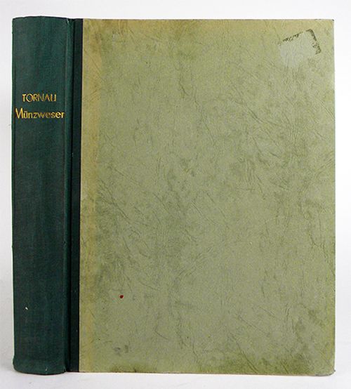Tornau, Otto. MÜNZWESEN UND MÜNZEN DER GRAFSCHAFT MANSFELD VON DER MITTE DES FÜNFZEHNTEN JAHRHUNDERTS BIS ZUM ERLÖSCHEN DES GRÄFLICHEN UND FÜRSTLICHEN HAUSES. Prag, 1937. 4to, original green cloth-backed boards, gilt. (4), 525, (3) pages; title printed in red and black; 56 fine plates. Binding worn, with some loosening to signatures. Very good or so. Very scarce. Clain-Stefanelli 9434*.
