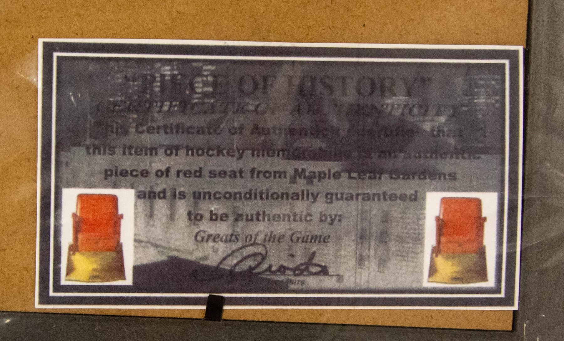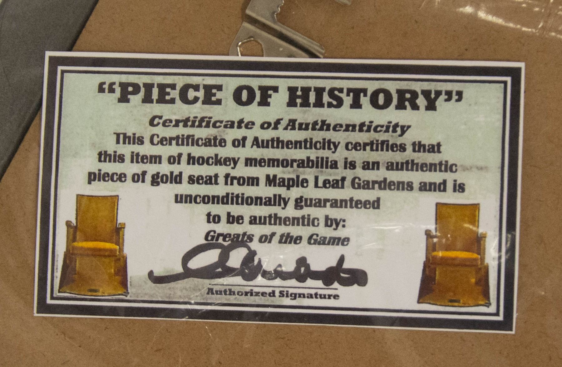 GOLD, RED GAME USED SEAT COA COA: GREATS OF THE GAME 12.5" X 15" **ALL ITEMS MUST BE REMOVED BY 5PM SATURDAY, NOVEMBER 16TH 2024. ALL REMAINING ITEMS WILL BE SUBJECT TO A $6.00 PER DAY STORAGE CHARGE. ANY ITEMS REMAINING AFTER MONDAY, DECEMBER 2ND 2024 WILL BE CONSIDERED FORFEITED. NO REFUNDS WILL BE ISSUED FOR FORFEITED ITEMS. TO SCHEDULE A PICK UP APPOINTMENT CLICK HERE