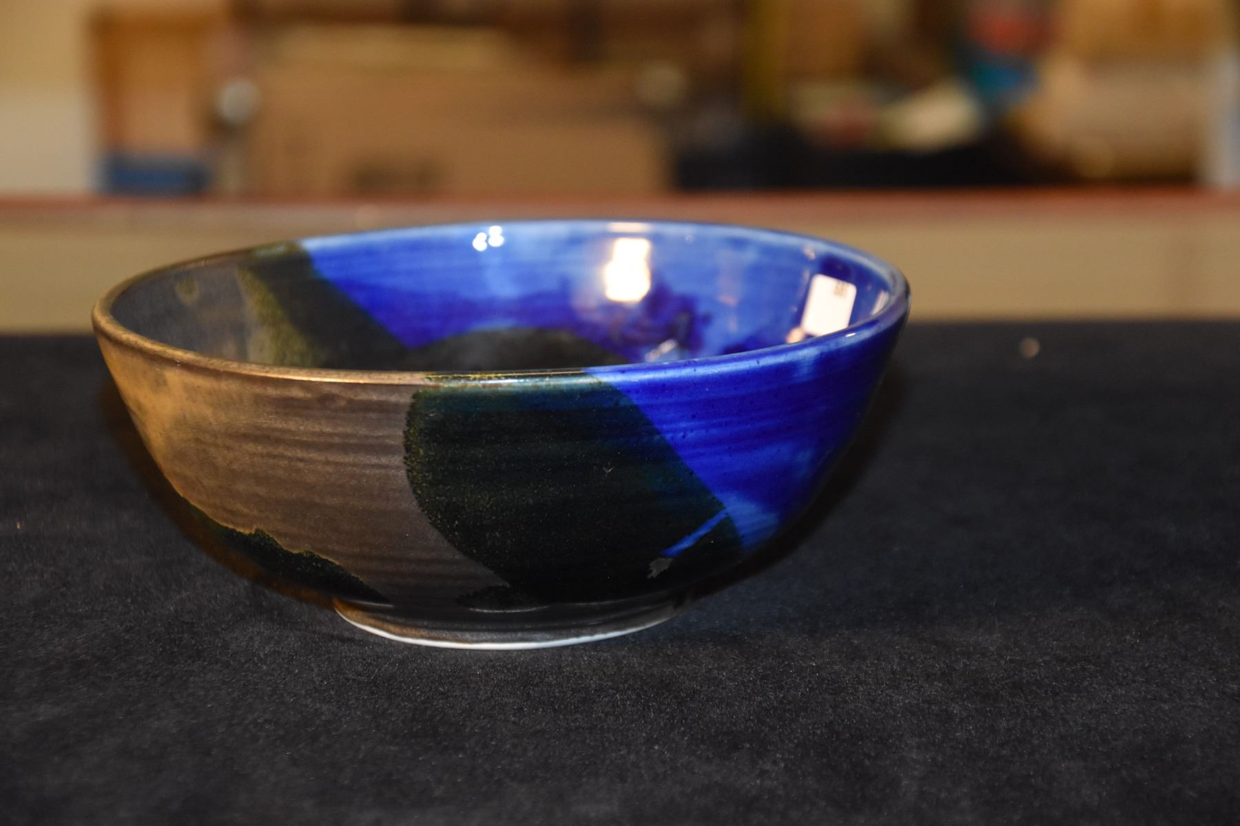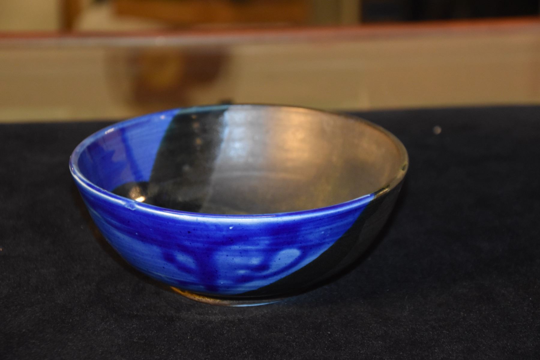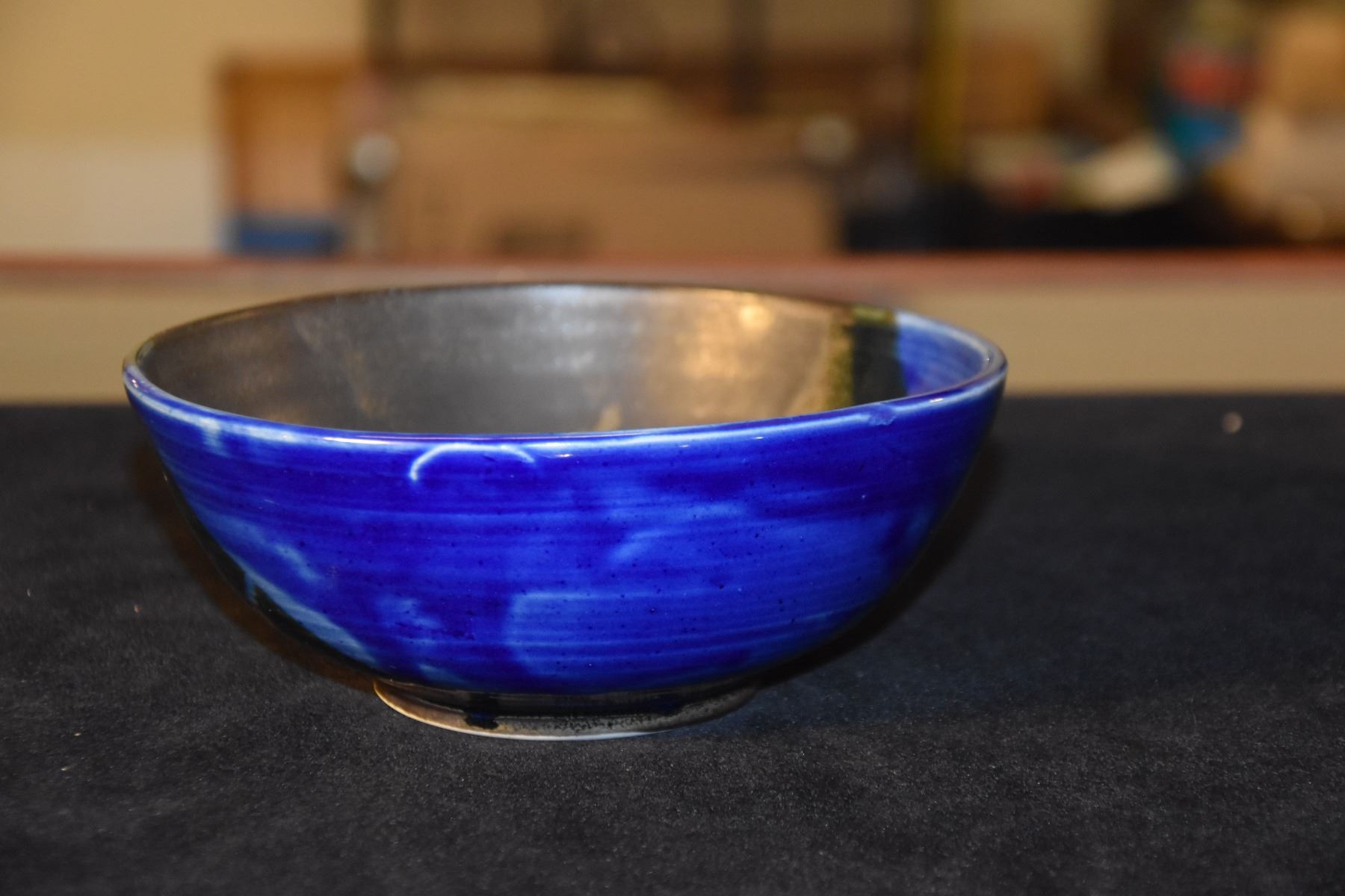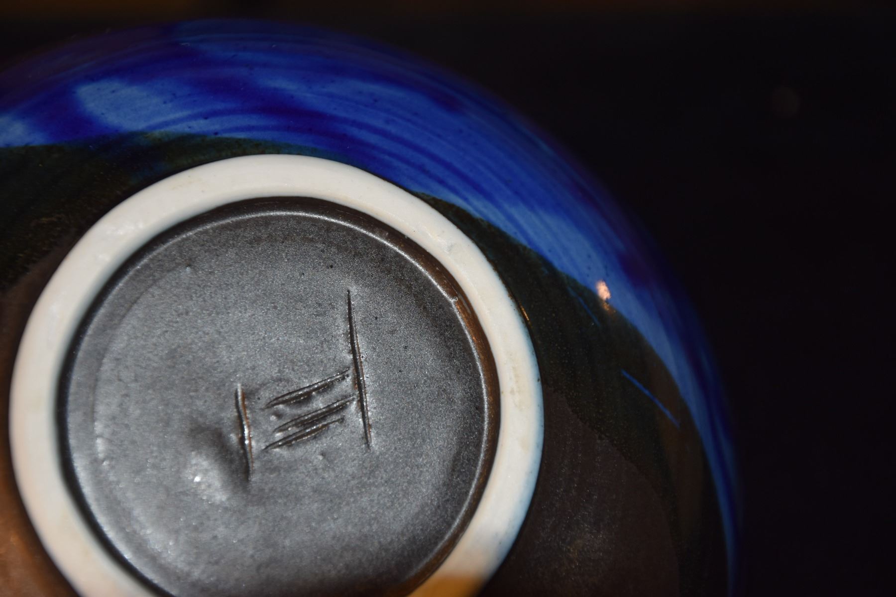 TOSHIKO TAKAEZU PORCELAIN BOWL W/BLUE GLAZE (7" X 3")