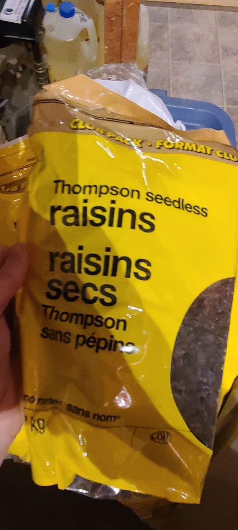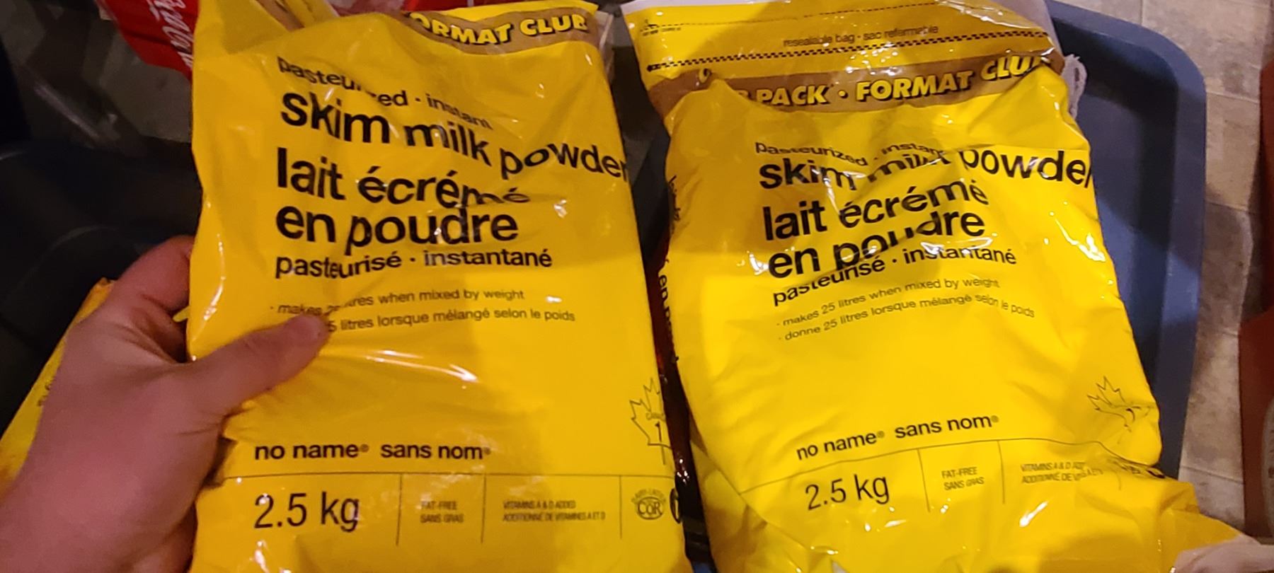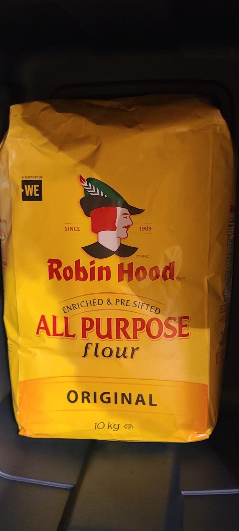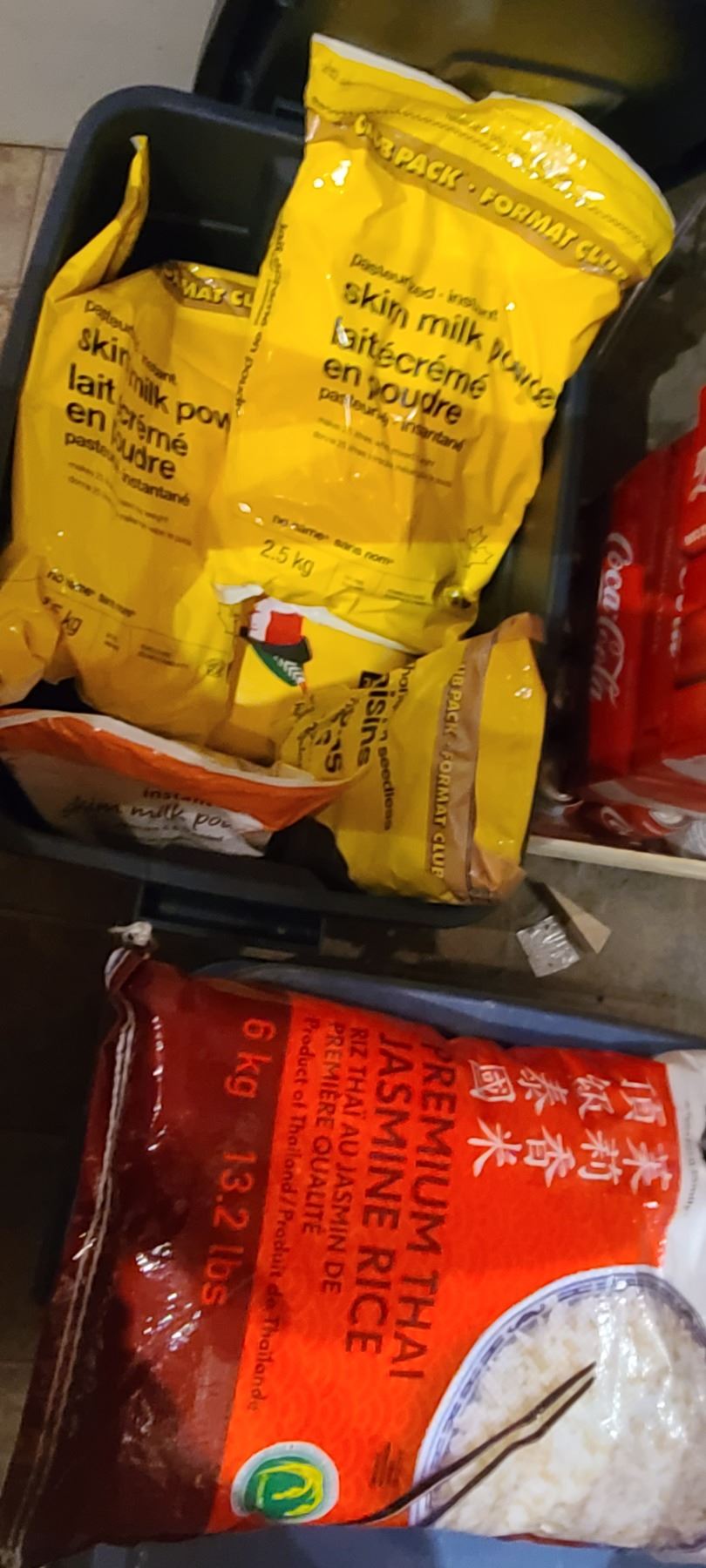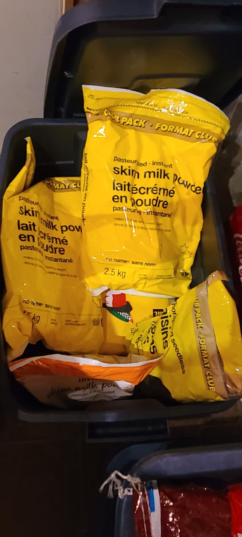 TOTE C/W 10KG FLOUR, 6KG POWDERD SKIM MILK AND BAG OF RAISINS
