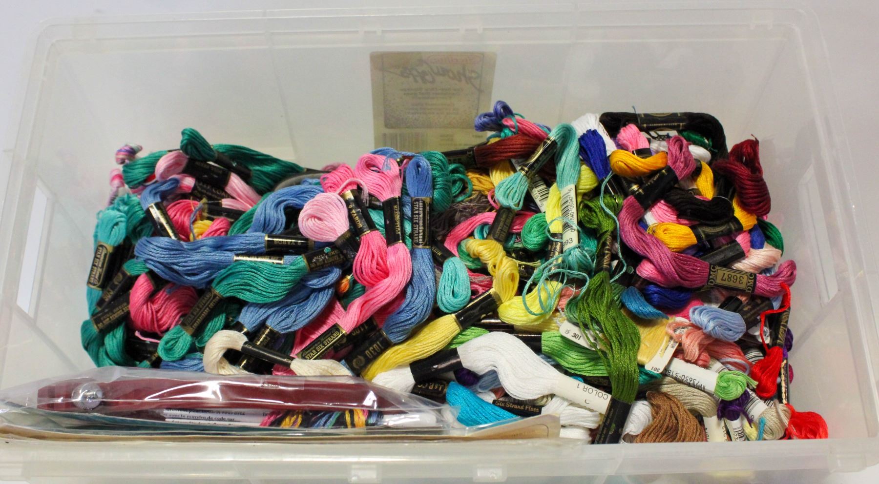 TOTE FULL OF EMBRODERY THREAD AND MORE