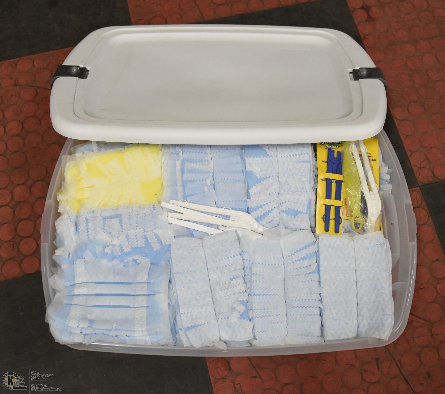 TOTE FULL OF SWIFTER REFILLS & HANDLES