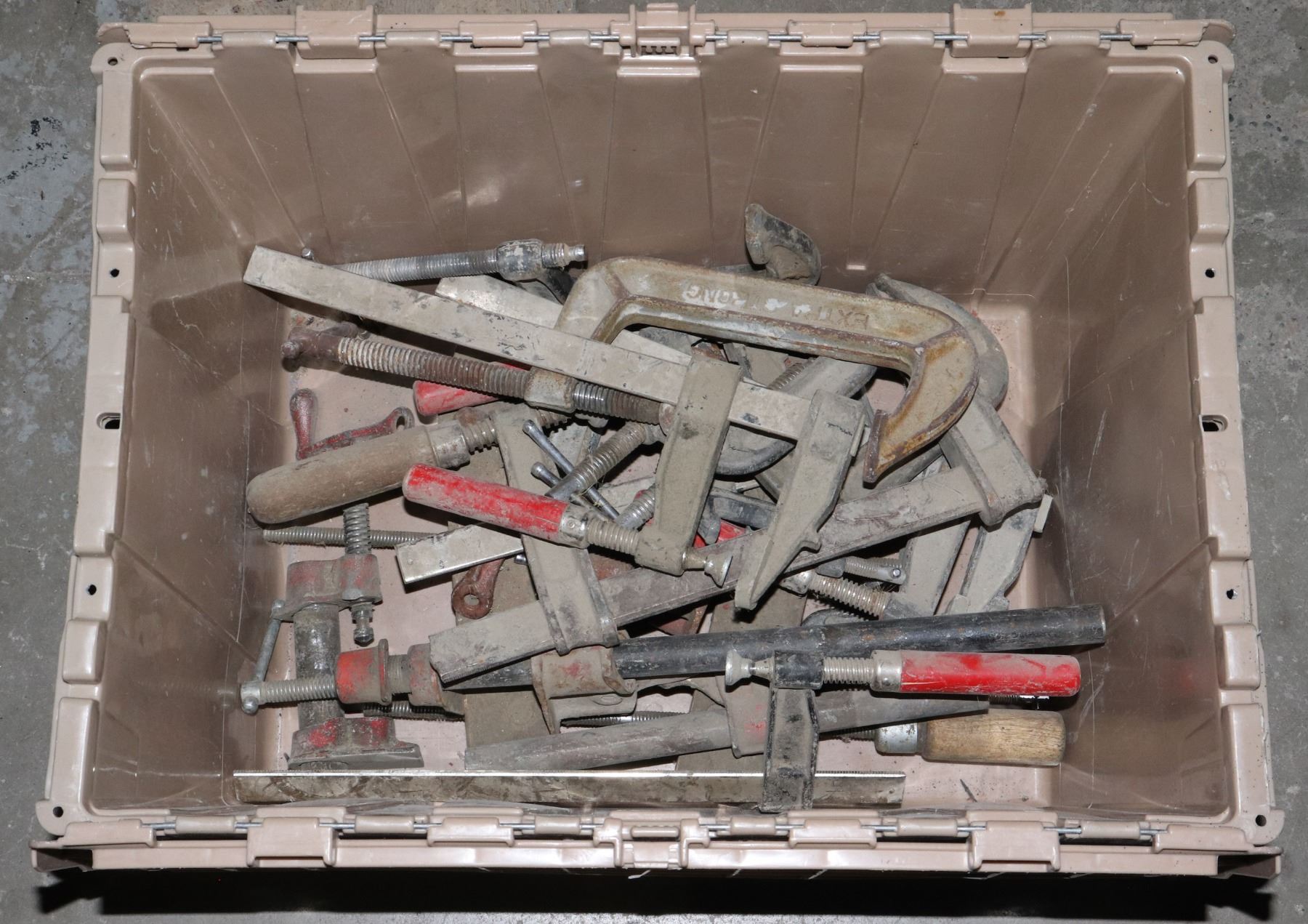 TOTE OF ASSORTED CLAMPS, SOME ARE INCOMPLETE
