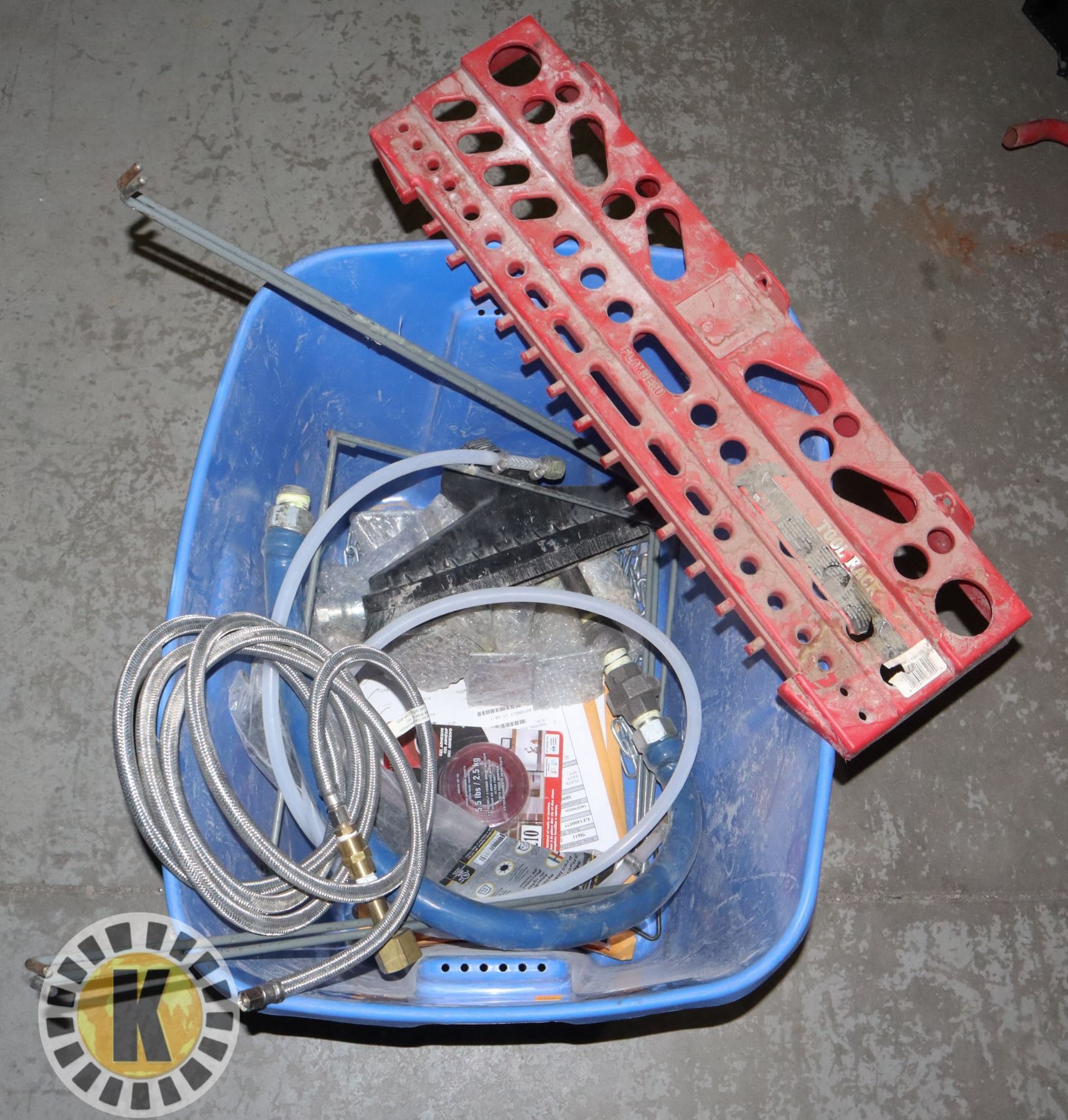 TOTE OF ASSORTED PLUMBING, HOME REPAIR
