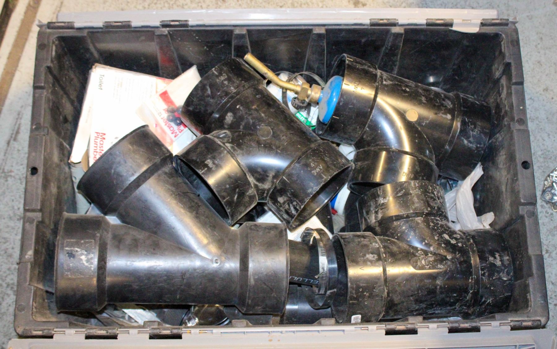 TOTE OF PLUMBING SUPPLIES