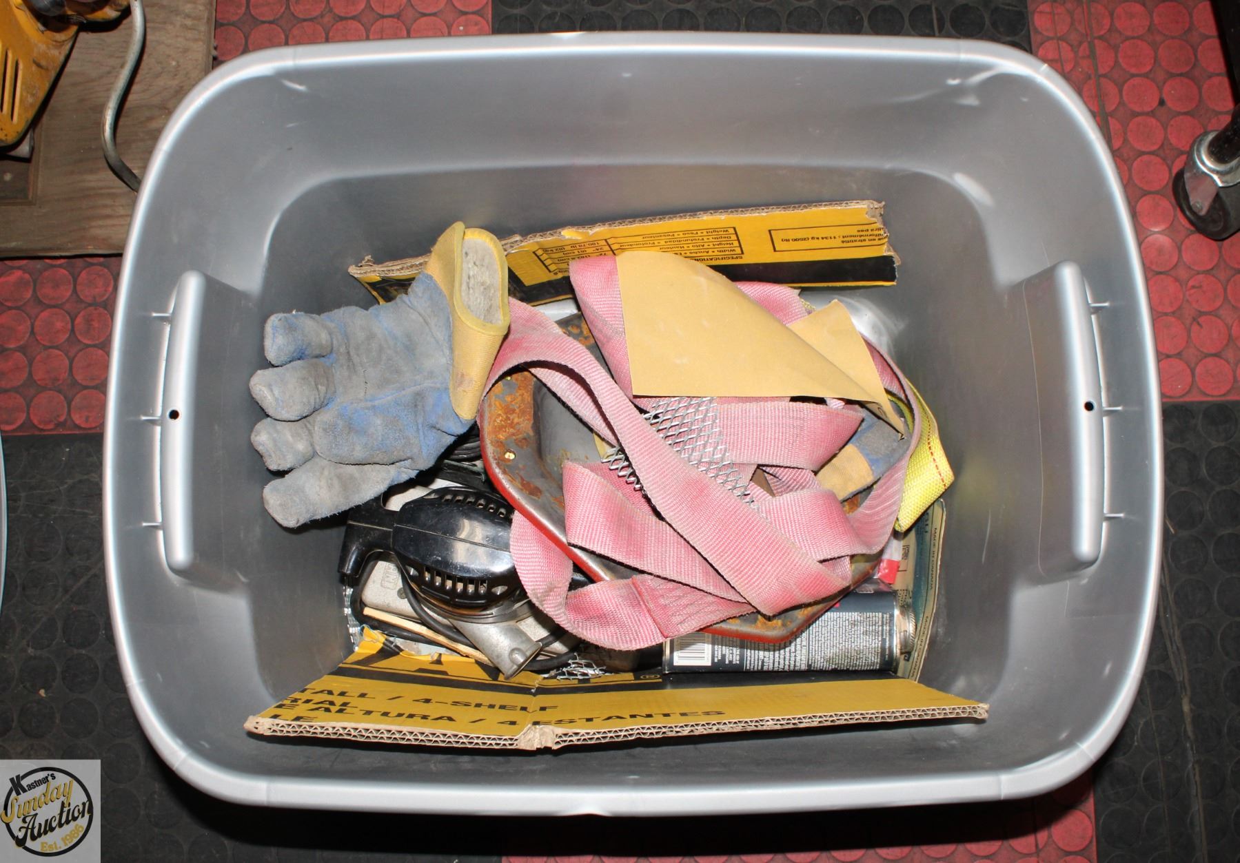 TOTE OF SHOP TOOLS AND ACCESSORIES
