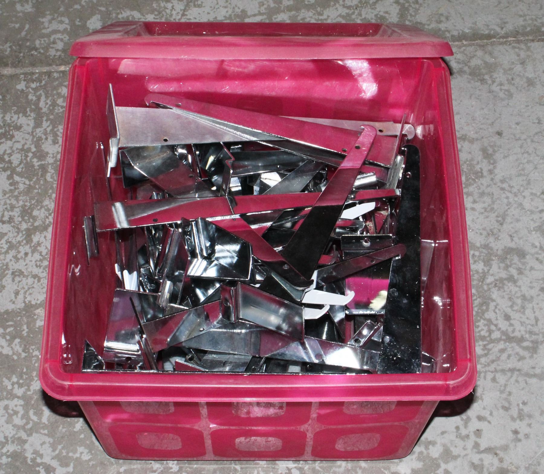TOTE OF STORE SHELF HANGERS