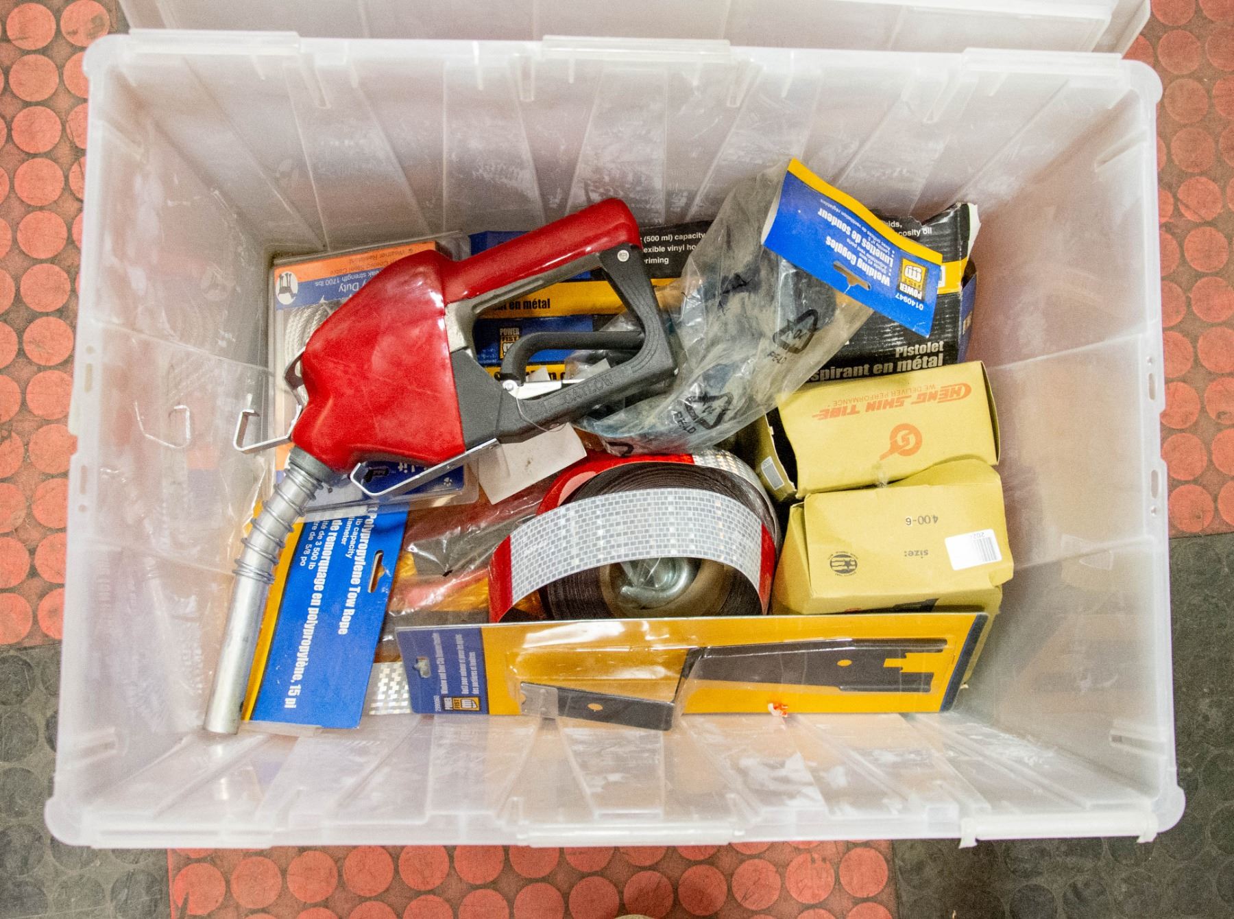 TOTE OF TOOLS AND EQUIPMENT