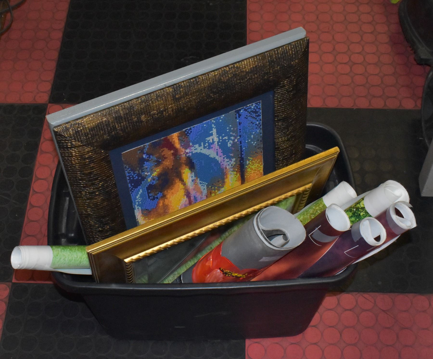 TOTE OF WALL HANGINGS INCLUDES MIRRORS, ROLLED