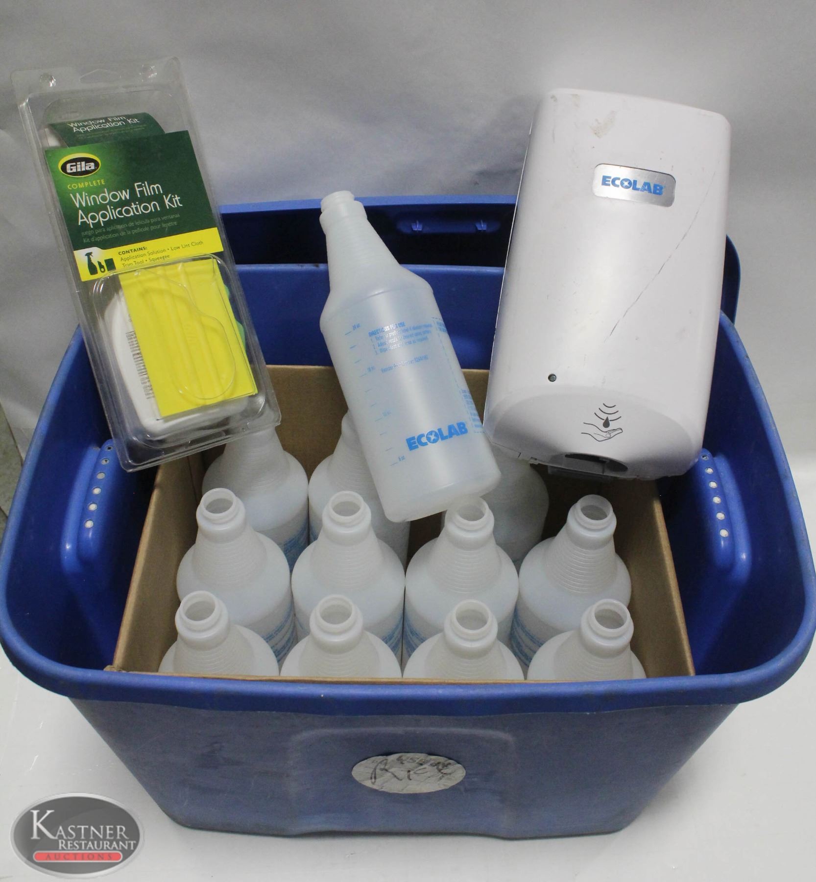 TOTE W/ CASE OF NEW ECOLAB BOTTLES (NO NOZZLE),