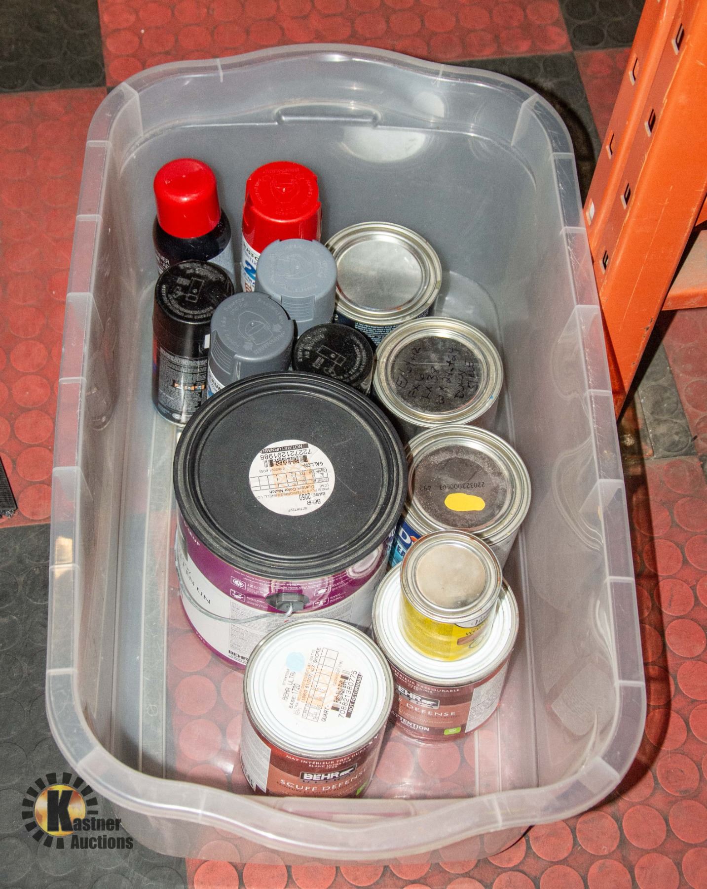 GALLON OF BEHR PREMIUM INTERIOR EGGSHELL ENAMEL, A QUART OF VARATHANE PRO SEMI LUSTER, 6 CANS OF SPRAY PAINT (BLACK, RED, GRAY), 4 QTS. OF SCUFF DEFENSE PAINT, 236 ML VARATHANE COLONIAL MAPLE WOOD STAIN **ALL ITEMS MUST BE REMOVED BY 5PM SATURDAY, DECEMBER 7TH 2024. ALL REMAINING ITEMS WILL BE SUBJECT TO A $6.00 PER DAY STORAGE CHARGE. ANY ITEMS REMAINING AFTER MONDAY, DECEMBER 23RD 2024 WILL BE CONSIDERED FORFEITED. NO REFUNDS WILL BE ISSUED FOR FORFEITED ITEMS. TO SCHEDULE A PICK UP APPOINTMENT CLICK HERE
