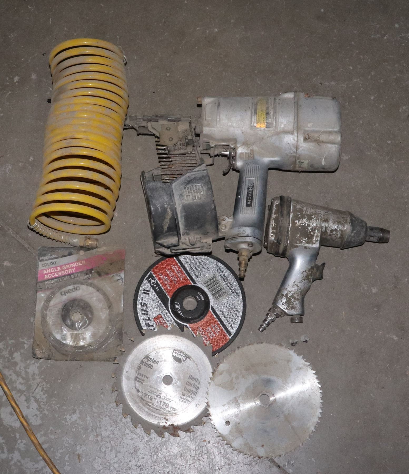 TOTE WITH ESTATE AIR TOOLS, ALL UNTESTED, SOLD AS