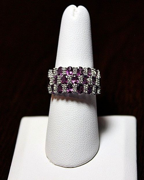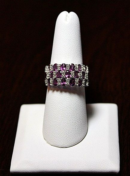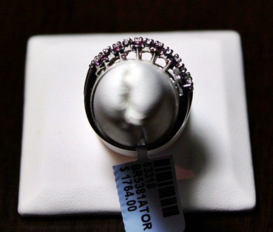 SILVER RING WITH 42 WHITE SAPPHIRES AND 17 TOURMALINES. TOURMALINE: 3.09CTW SILVER: 5.00G RETAIL PRICE $1764.00