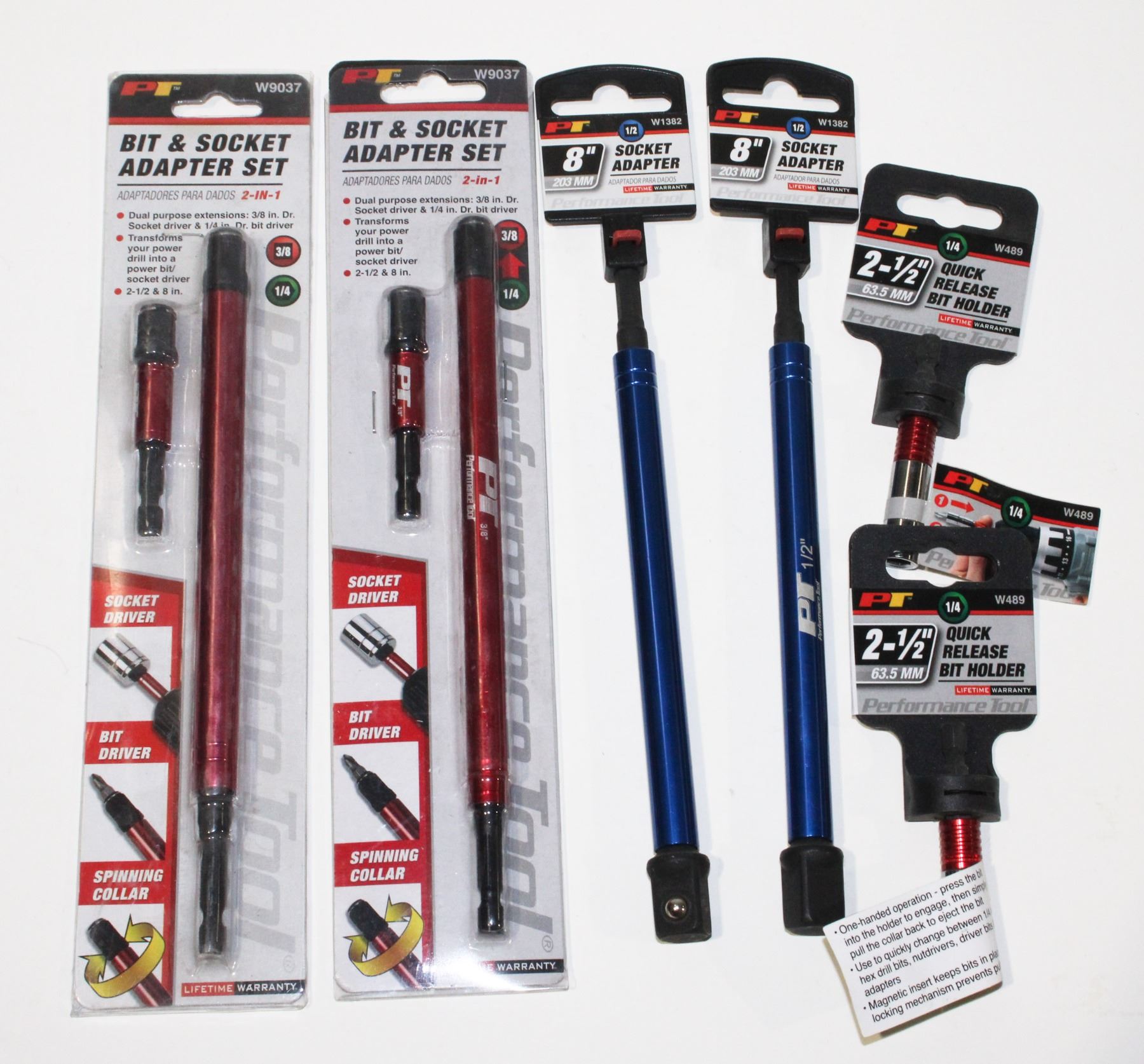 ADAPTERS (1/2" DRIVE), AND TWO 1/4" DRIVE QUICK RELEASE BIT HOLDERS