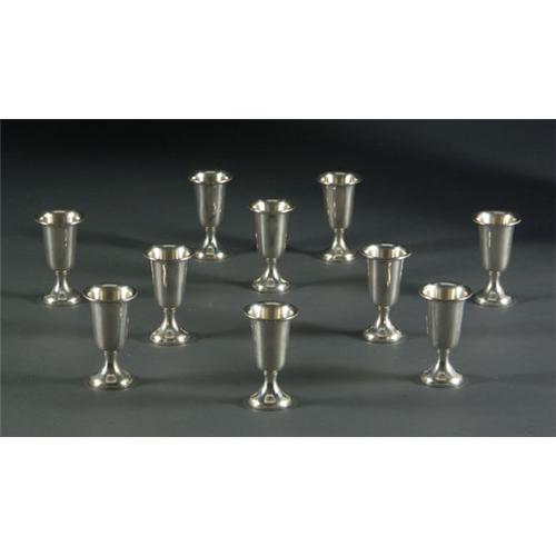 STERLING: A lot of ten sterling silver cordials by Towle Silversmiths, rolled edged, weighted bases, hallmarked after 1890, 2 7/8'' High.