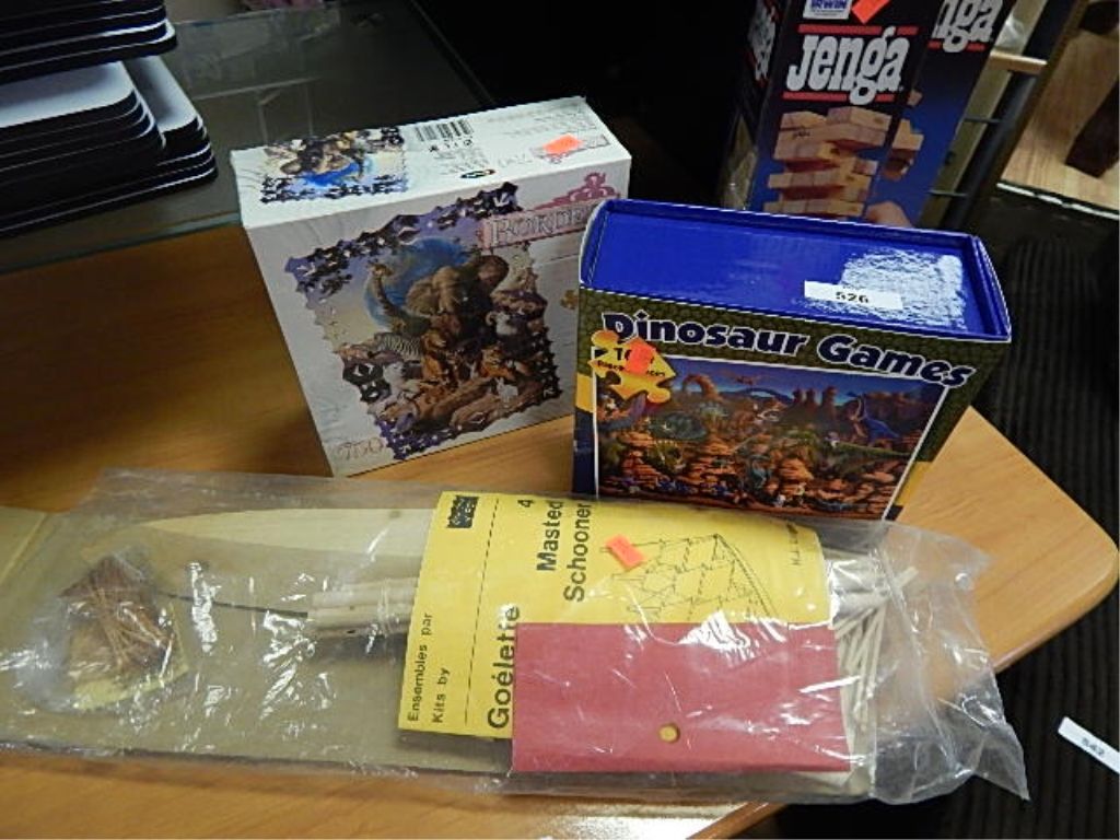 TOYS - MODEL SHIP, 2 PUZZLES AND JENGA