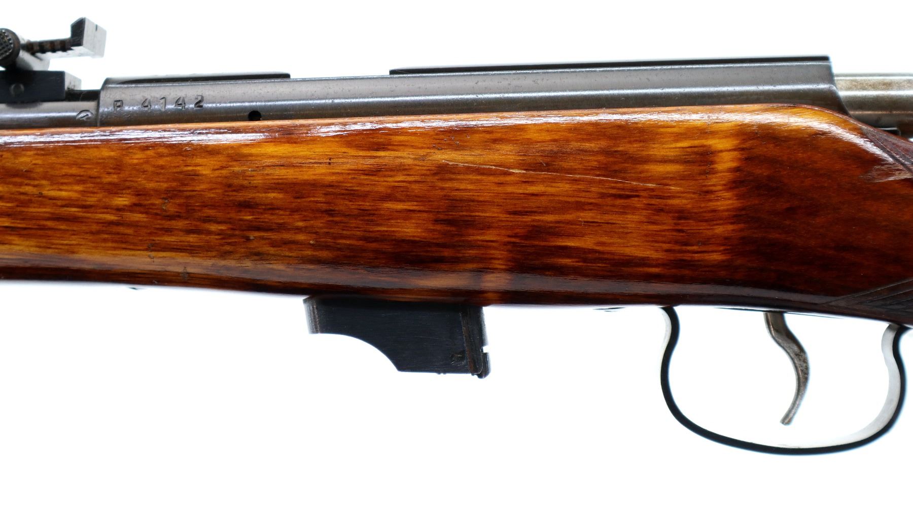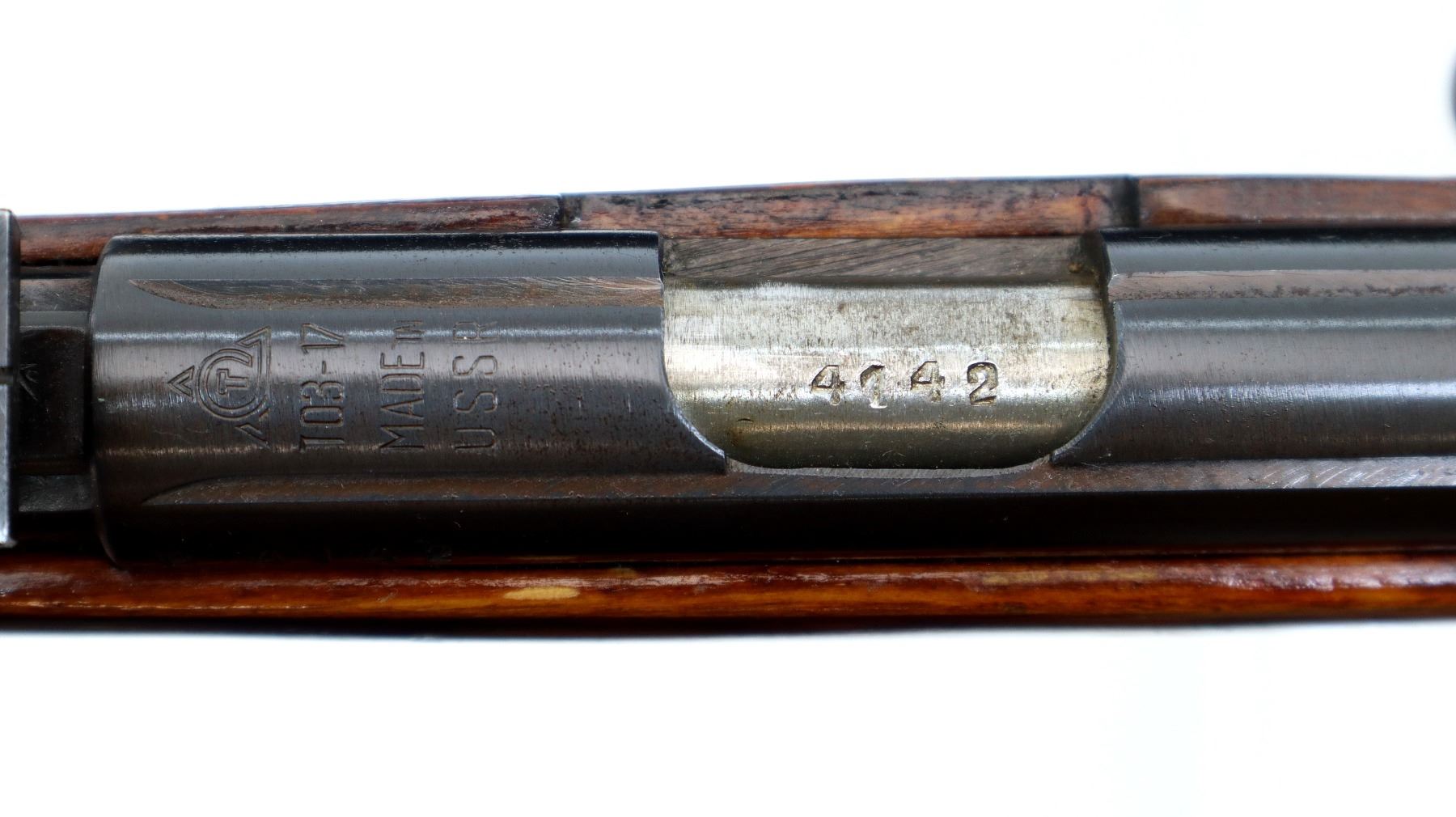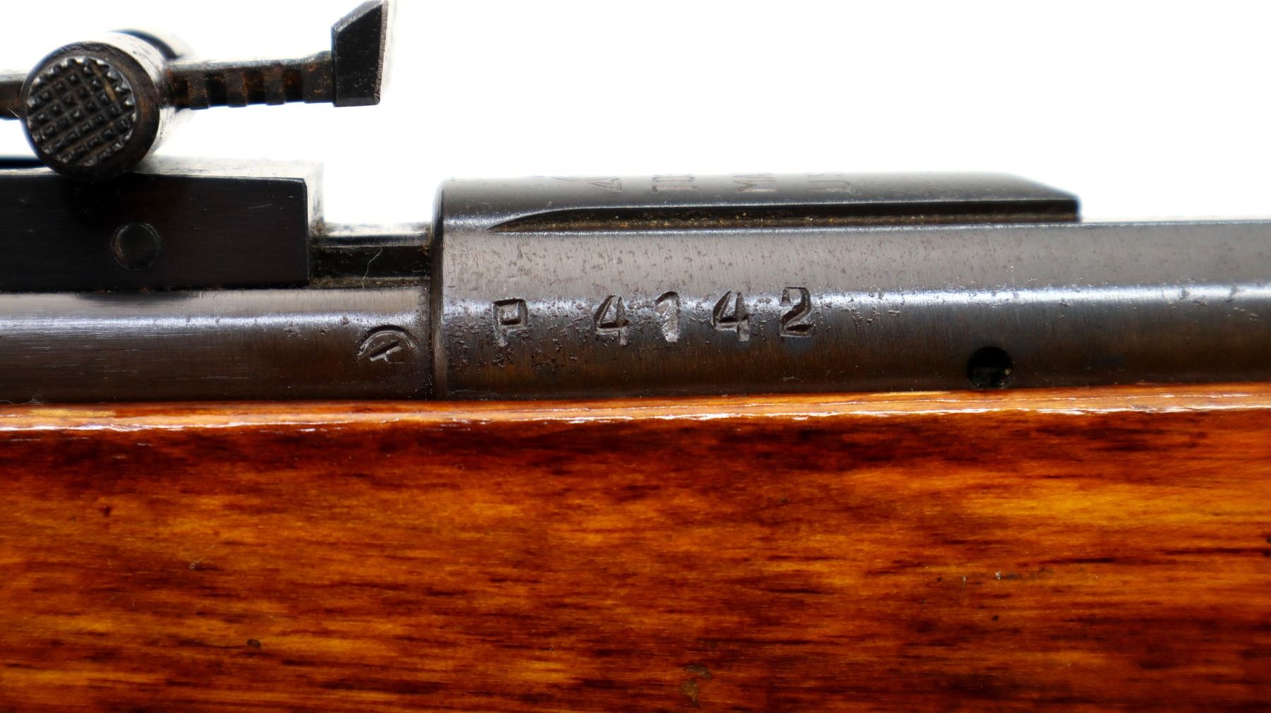 Wear: Metal finish shows some light rust speckles, scratches, handling marks and wear. Stock shows some marks, scratches and wear.