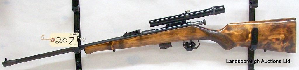 NON-RESTRICTED, BOLT ACTION, 22LR, 21" BARREL, SN A3879. WOOD HAS A COUPLE SCRATCHES, BLUING YURNING GREY, BORE VERY GOOD.