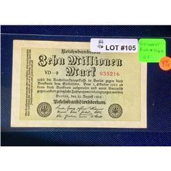GERMANY BANKNOTEE 1923 PICK#106b EF BEHN MILLIONEN MARK SERAIL: 035216