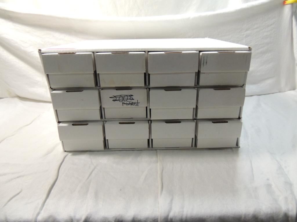 CARDBOARD ORGANIZATION, CARD STORAGE, 12 BOXES AS SHOWN SEE PHOTO FOR MORE DETAILS.