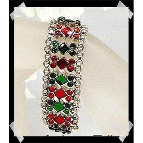 This bracelet is truly a creative masterpiece and has an astounding presentation. Hallmarked 925 sterling and fashioned in Rajasthan, India is a fine example of their mastercraftsmanship. The bracelet 7.5" in length with a depth of 28mm and a gram weight of 76.3. Truly, this will very quickly become your favorite piece of jewelry. (item 4171)