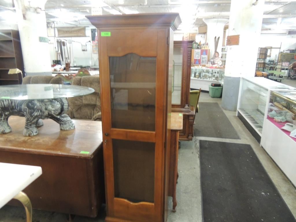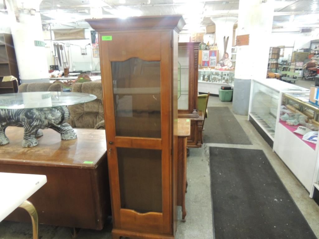 WOODEN GUN CABINET, TRADITIONAL GUN CABINET, WOODEN, STYLISH, LOCKING GUN CABINET, DISPLAY CABINET, AS SHOWN SEE PHOTO FOR MORE DETAILS.