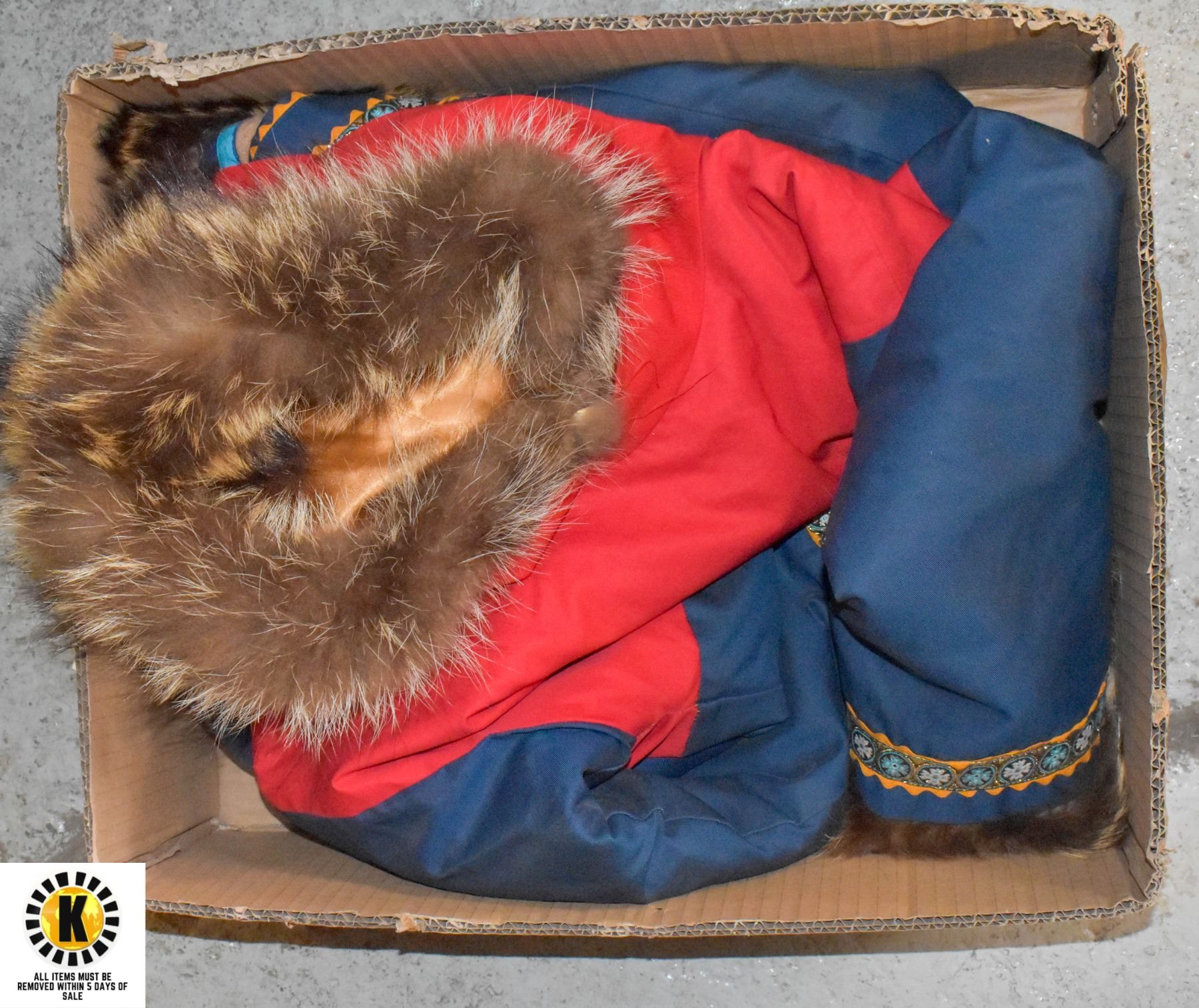 SIZE 5/6 APPROXIMATELY. CUSTOM MADE WITH DUFFEL LINING AND FUR TRIM.
