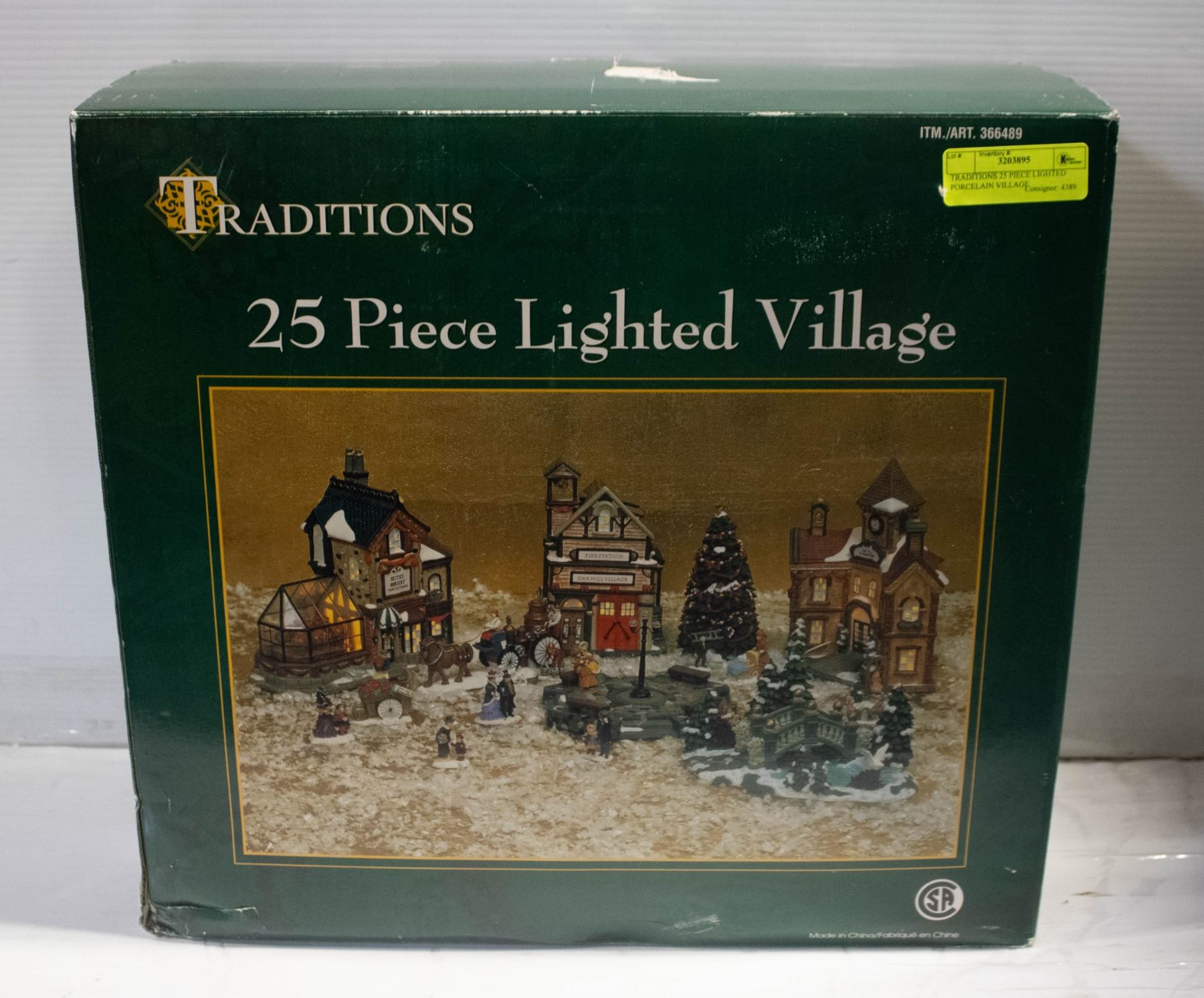 TRADITIONS 25 PIECE LIGHTED PORCELAIN VILLAGE