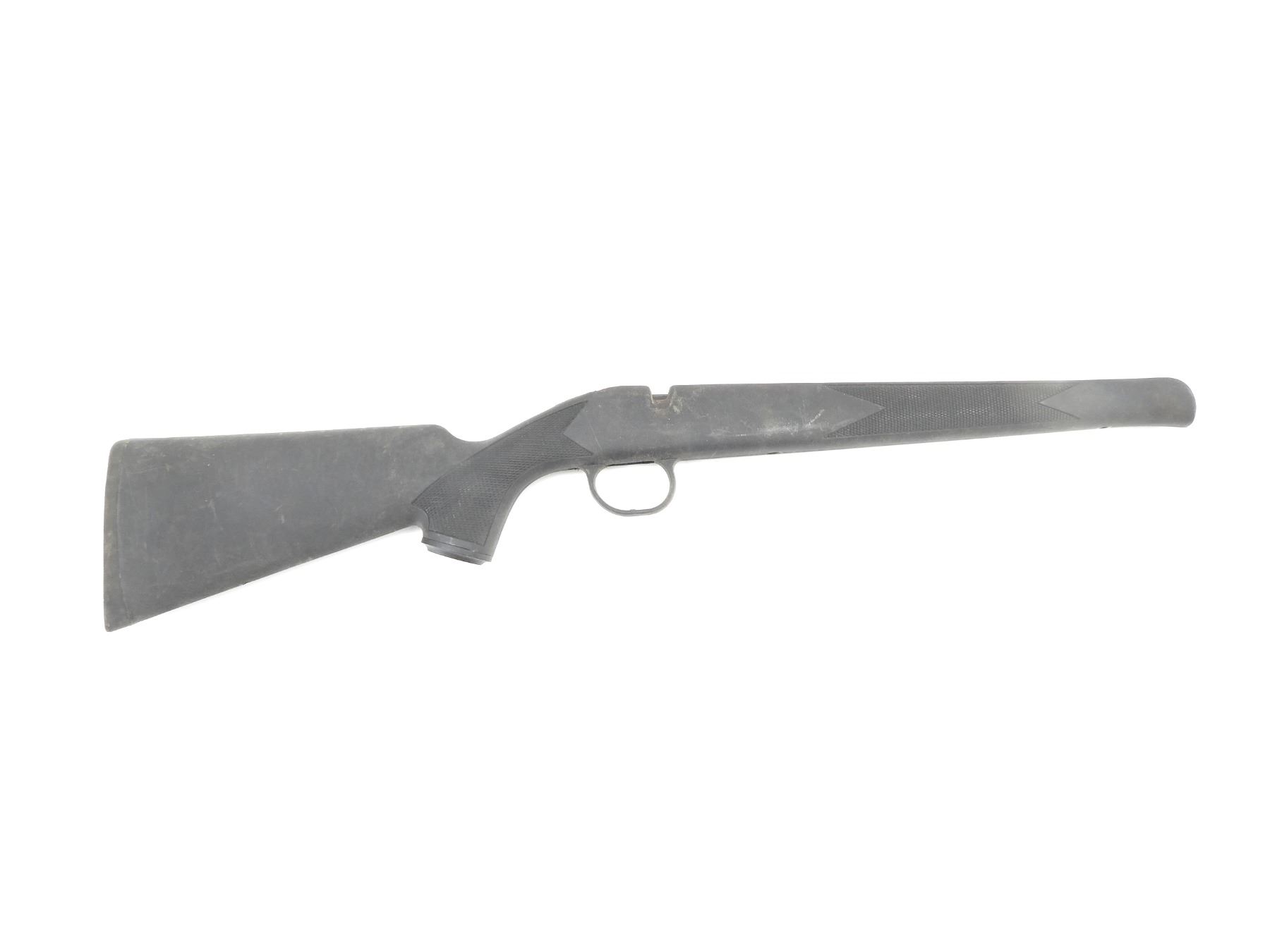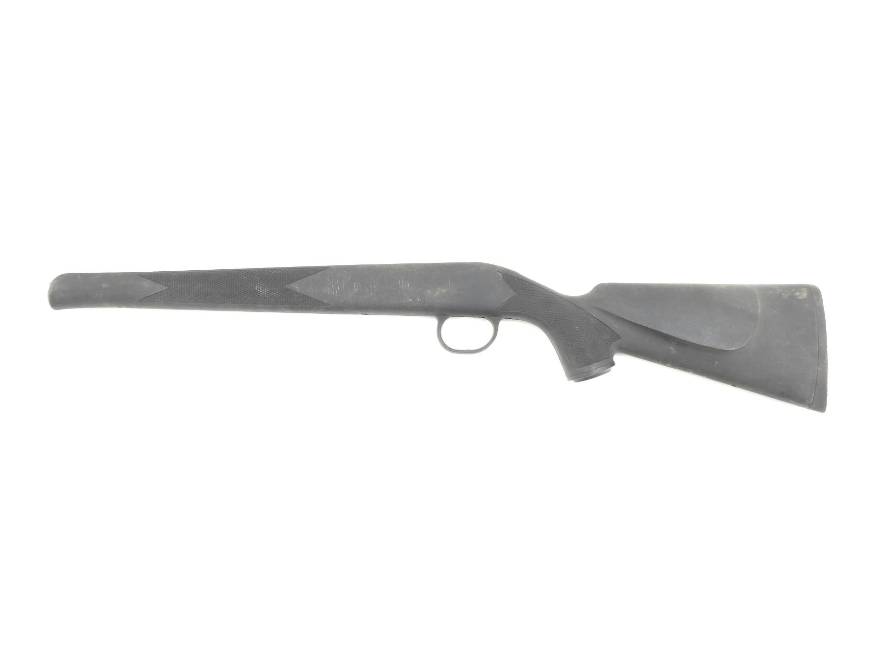 (1) BLACK SYNTHETIC CONSTRUCTION, NO VISIBLE MARKINGS, GRIP CAP & "TRADITIONS" BUTT PLATE, OAL APPROX. 29.5". MAY REQUIRE FITTING. SEE PHOTOS.