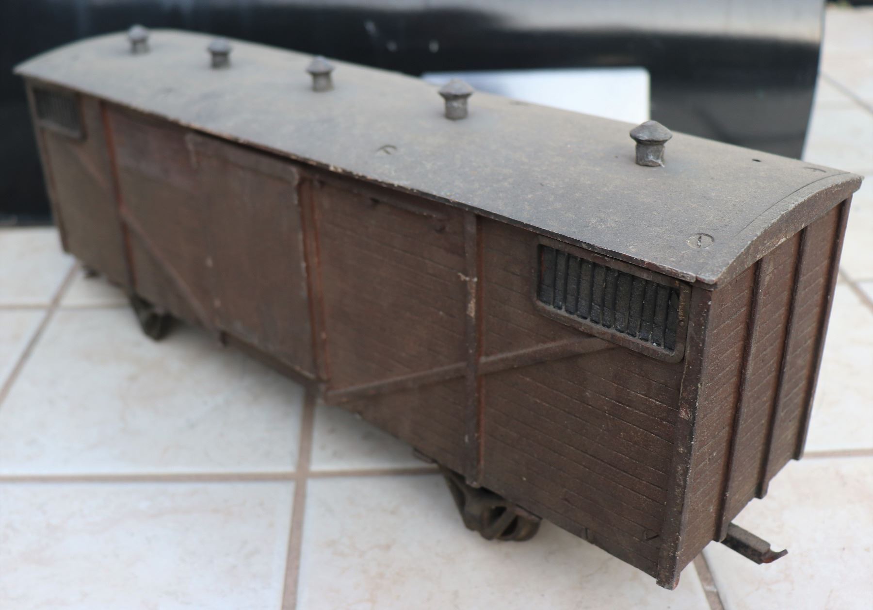 TRAIN CAR METAL ANTIQUE 1930's FILMING MINIATURE!