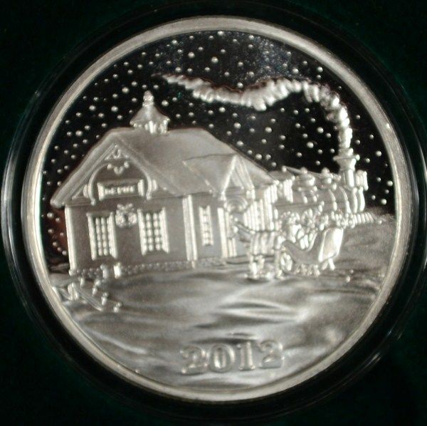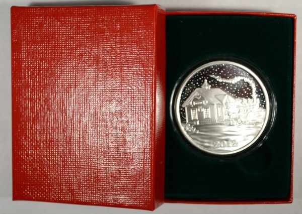 TRAIN AND SLEIGH AT TRAIN DEPOT WITH SNOW SCENE ON A HIGH QUALITY ART BAR WITH PLASTIC CAPSULE AND RED GIFT BOX MAKES THE PERFECT GIFT, EST. $60.00 TO $65.00