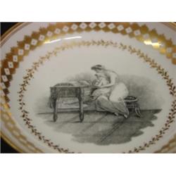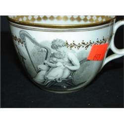 TRANSFER & GILT DEC. PORCELAIN CUP & SAUCER. Cup and saucer depict mother teaching child to play musical instruments.