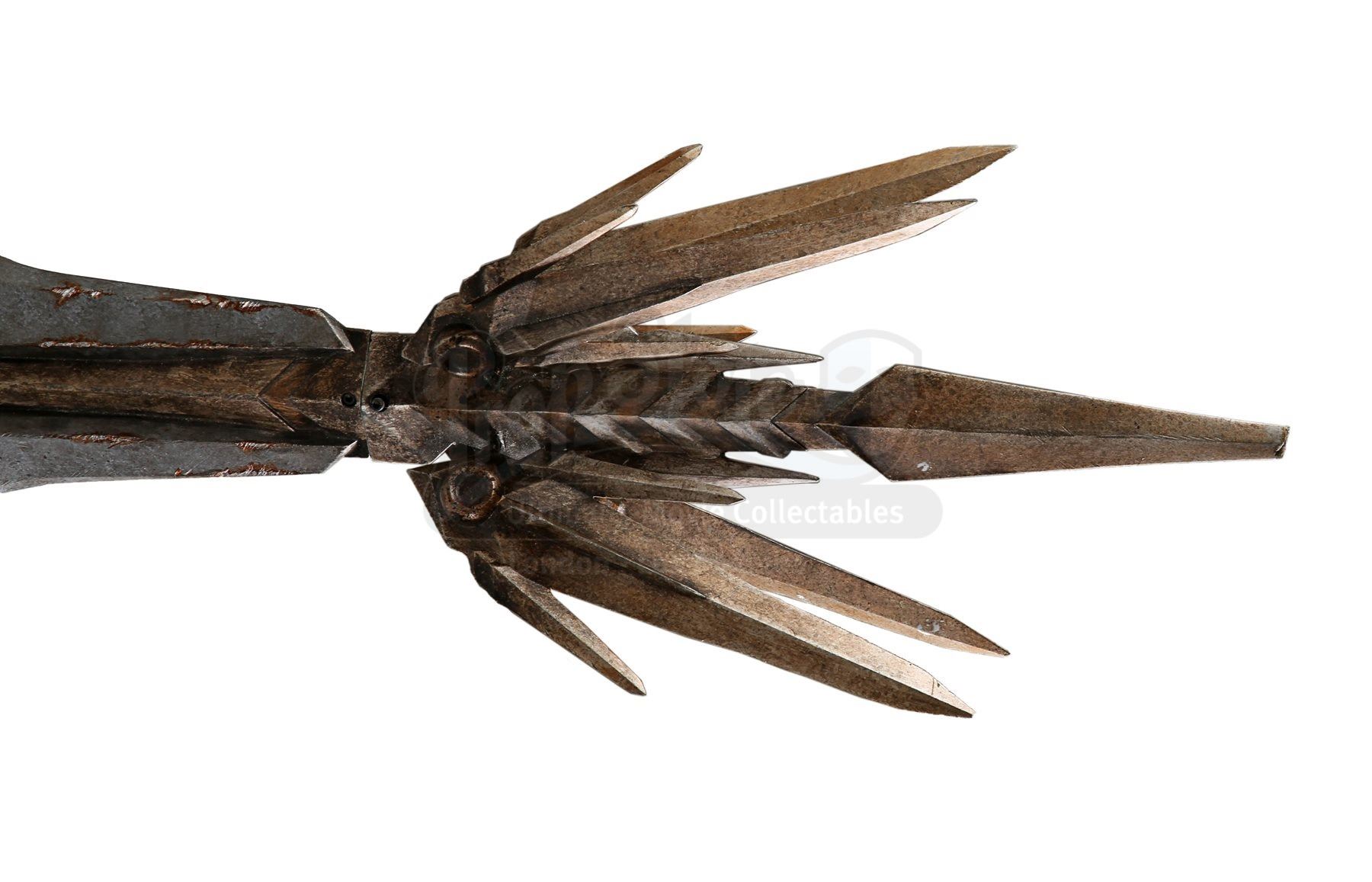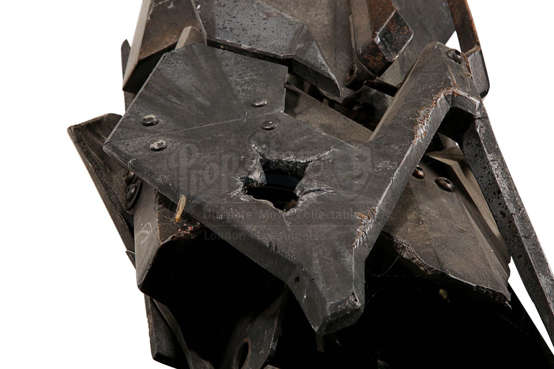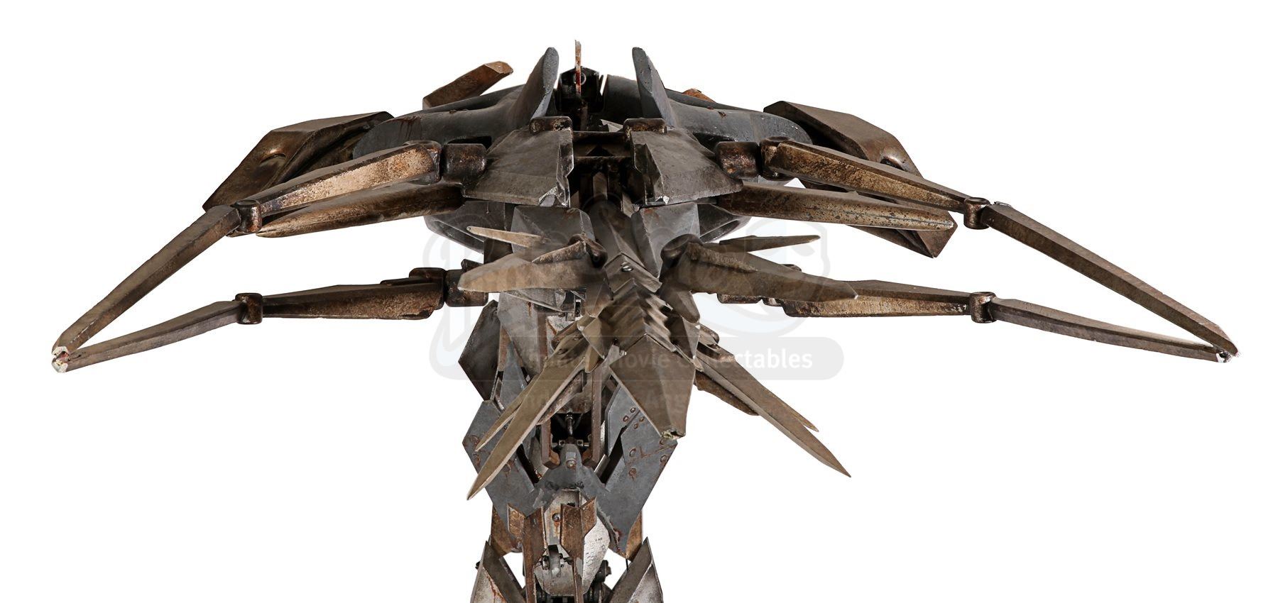 The full-size tail is built around multiple fastened steel segments, covered in similarly segmented fibreglass armour-plating that is decorated with metallic grey paint, dressed with rivets, and given scuffs and an aged patina. The tip of the tail features pointed mandibles. Running through the centre of the rig are lengths of steel cable and rope that allowed the puppeteers to curl and twitch the tail on set. It remains in very good condition. Dimensions: 350 cm x 85 cm (138” x 34”)