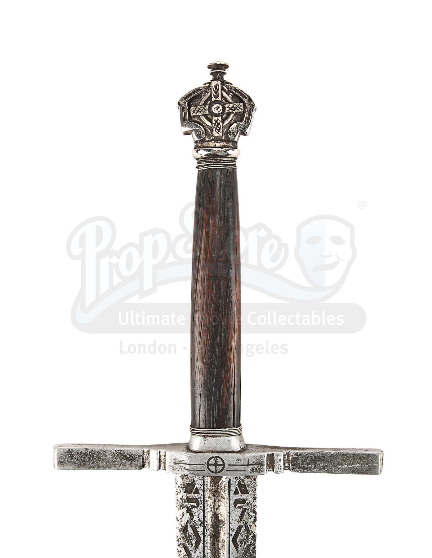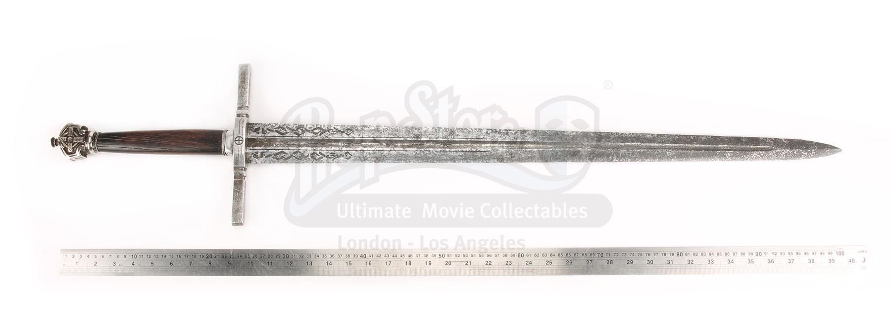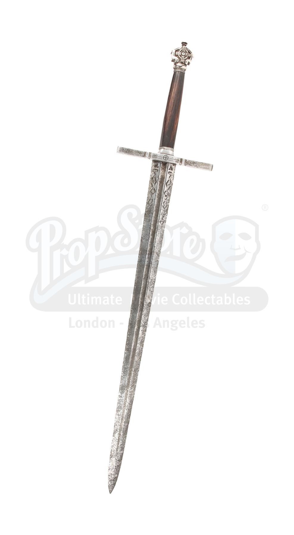 Sir Edmund Burton's (Anthony Hopkins) office display sword from Michael Bay's sci-fi action adventure Transformers: The Last Knight. Sir Edmund had assorted swords on display in his office when Cogman invited Cade (Mark Wahlberg) to come to the United Kingdom and meet his employer.
