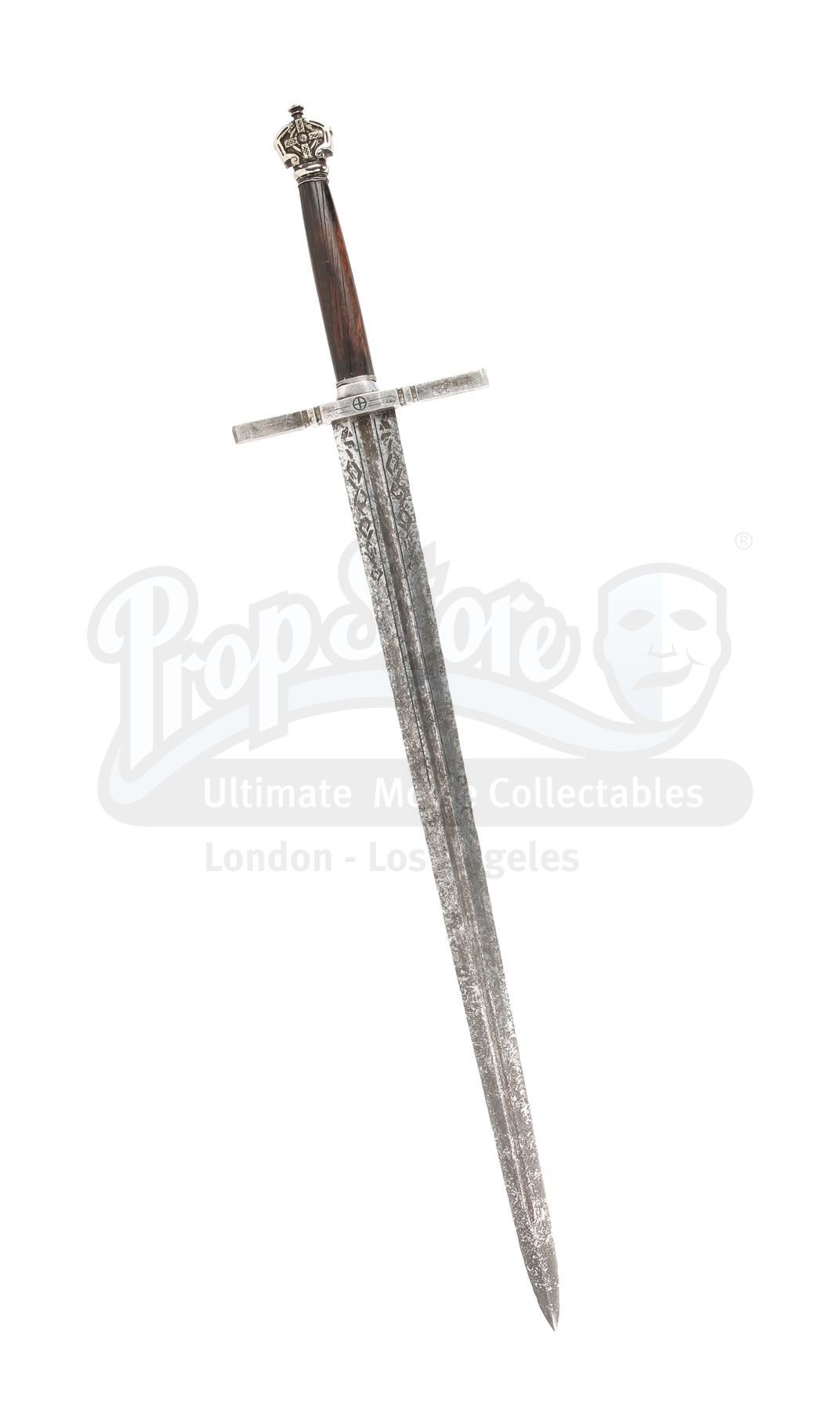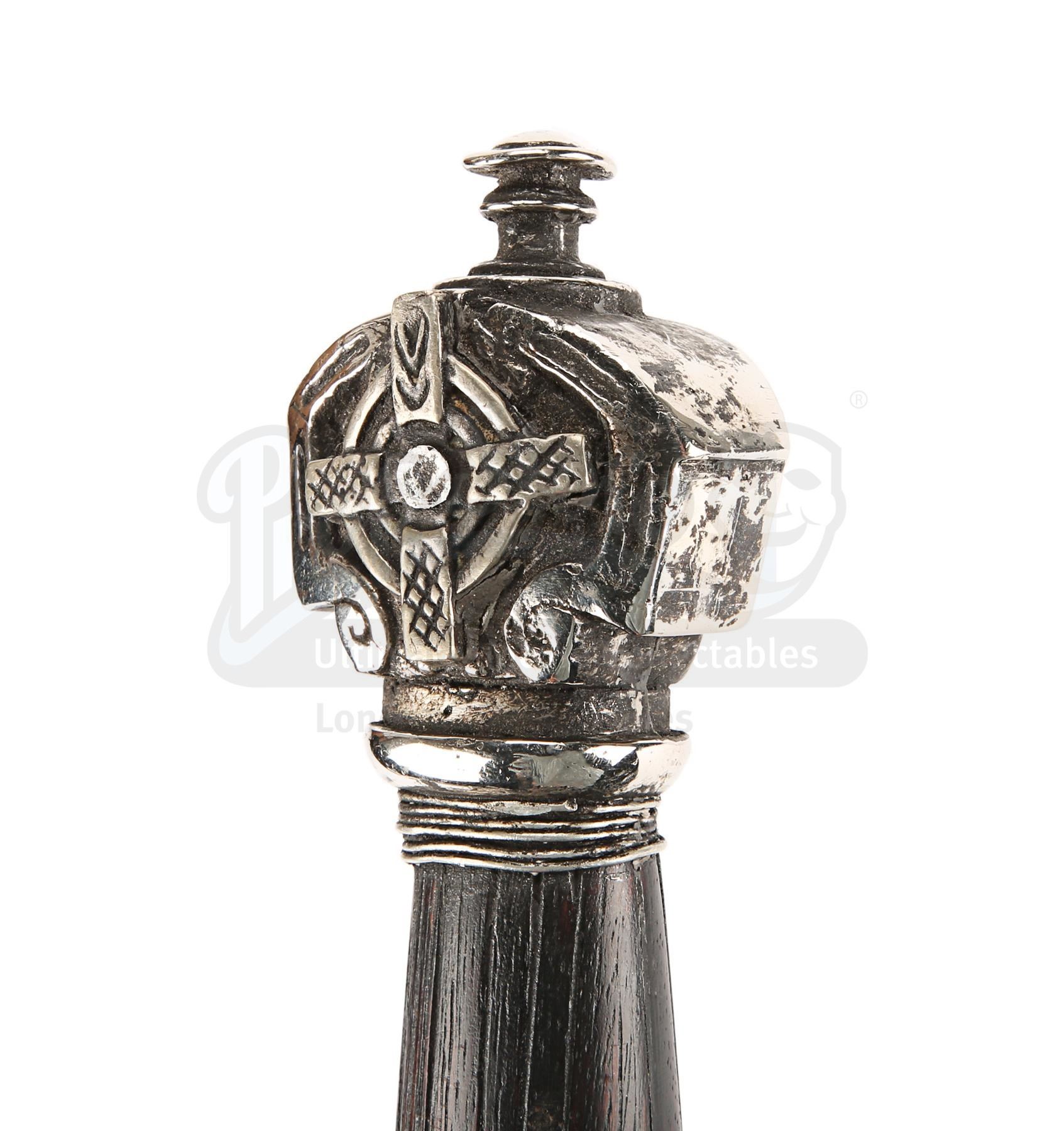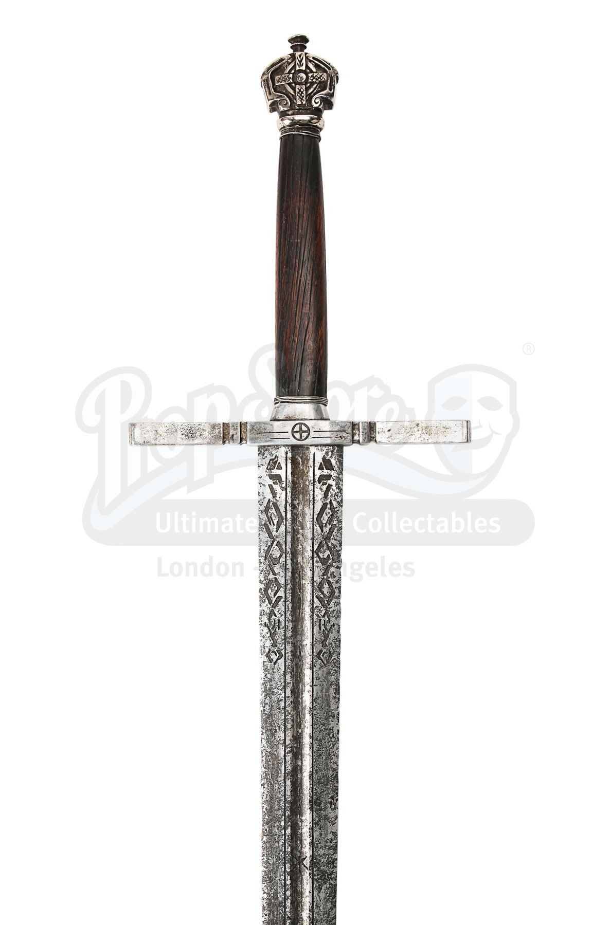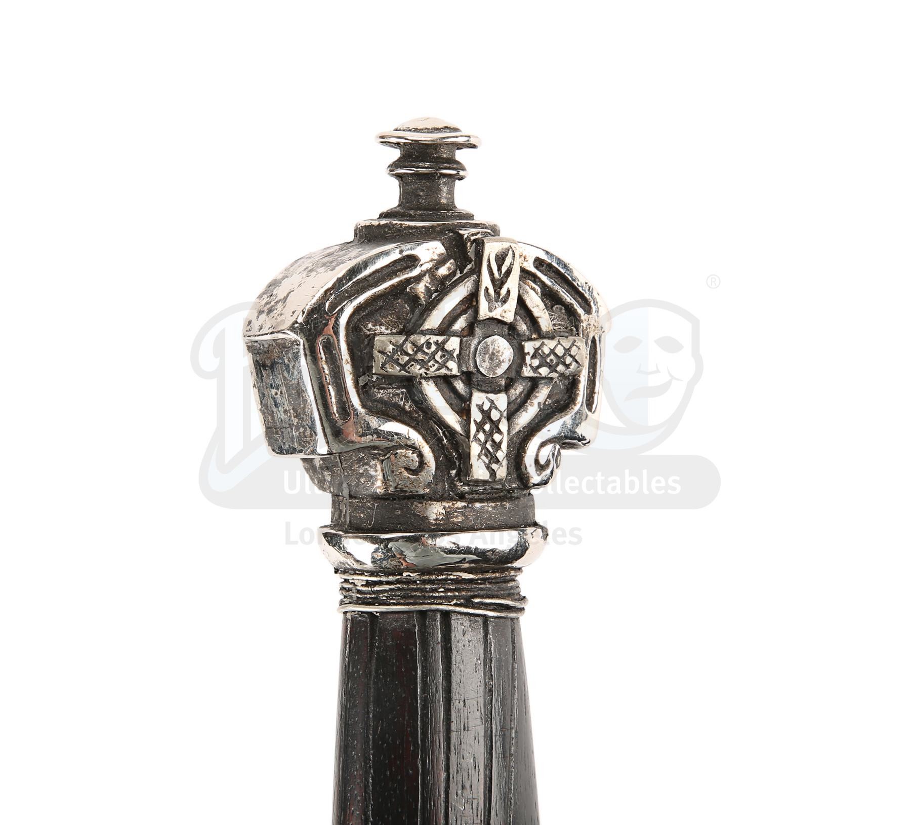 Sir Edmund Burton's (Anthony Hopkins) office display sword from Michael Bay's sci-fi action adventure Transformers: The Last Knight. Sir Edmund had assorted swords on display in his office when Cogman invited Cade (Mark Wahlberg) to come to the United Kingdom and meet his employer.
