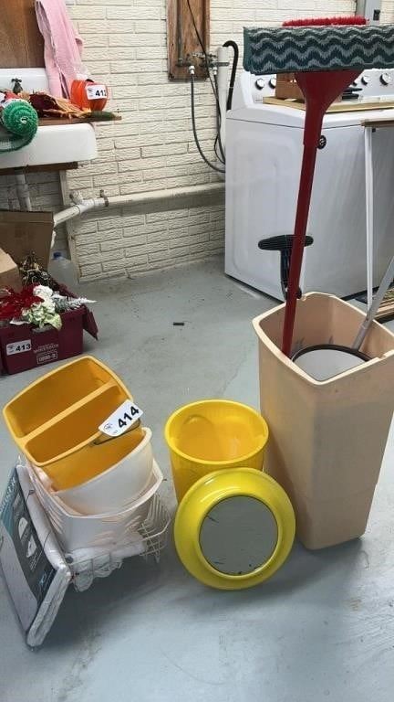 TRASH CANS, BUCKETS, IRONING BOARD COVER, MIRROR