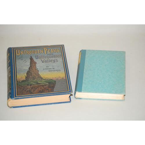 TRAVEL. A Group of 2 Volumes as Listed. Hard Cover. Very Good condition. ***Untrodden Peaks and Unfrequented Valleys - A Midsummer Ramble in the Dolomites by Amelia B. Edwards. (1890) 2nd Ed., London: George Routledge & Sons. With frontis, plates & folding map, bound in color illustrated cloth, gilt still bright, binding & hinges tight. ***To Monadnock - The Records of a Mountain in New Hampshire Through Three Centuries, gathered by Helen Cushing Nutting. (1925) WITH A SIGNED LETTER BY NUTTING LAID IN. Frontis, plates, bound in paper & cloth with paper spine label, binding & hinges tight.