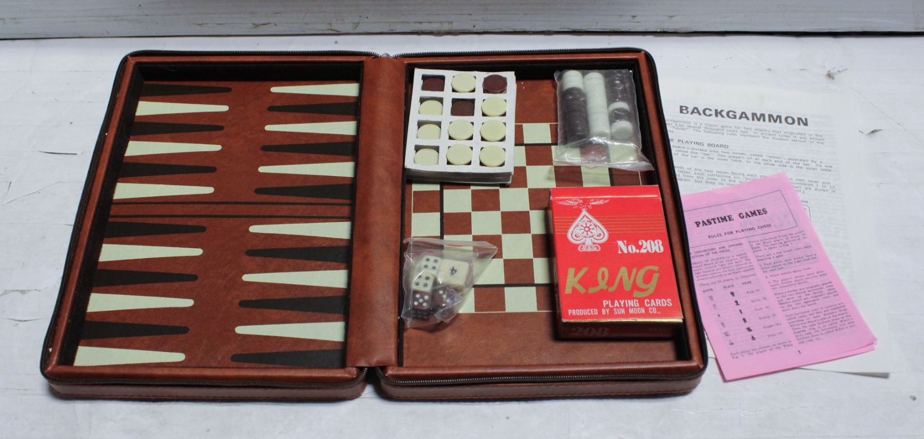 TRAVEL BACKGAMMON GAME LEATHER CASE