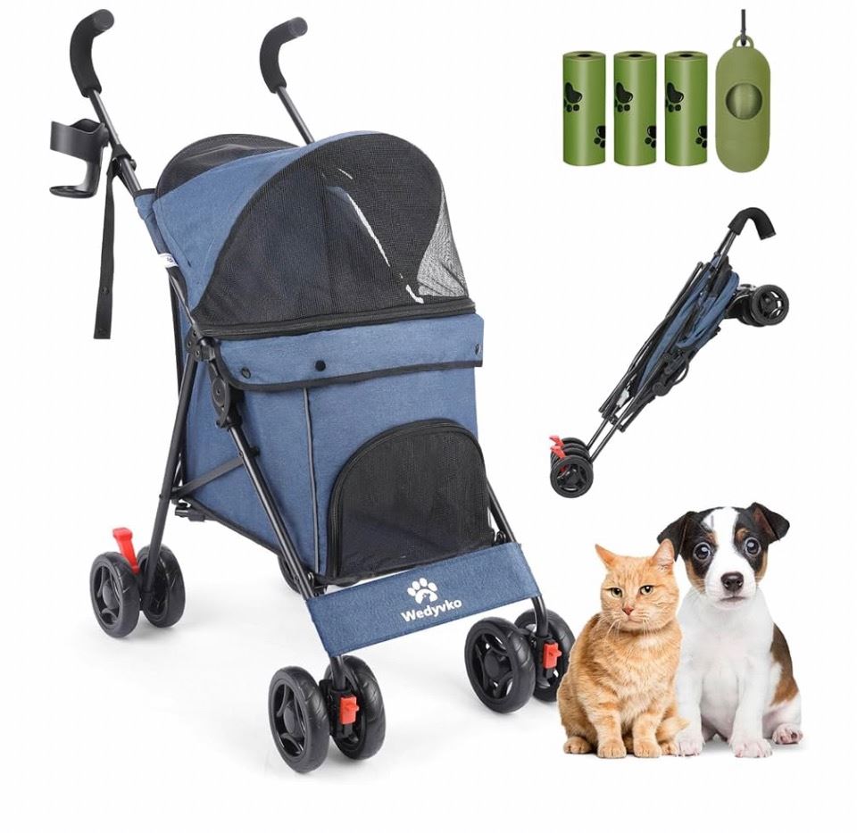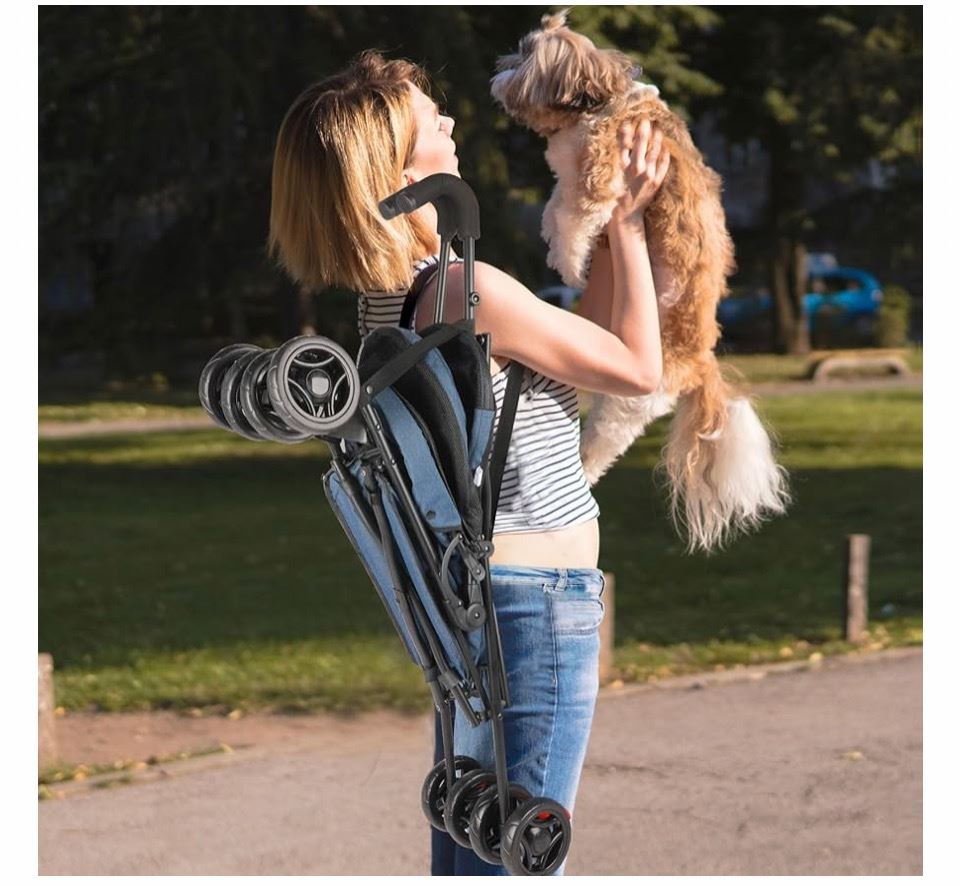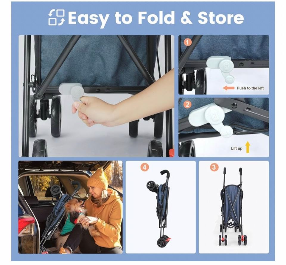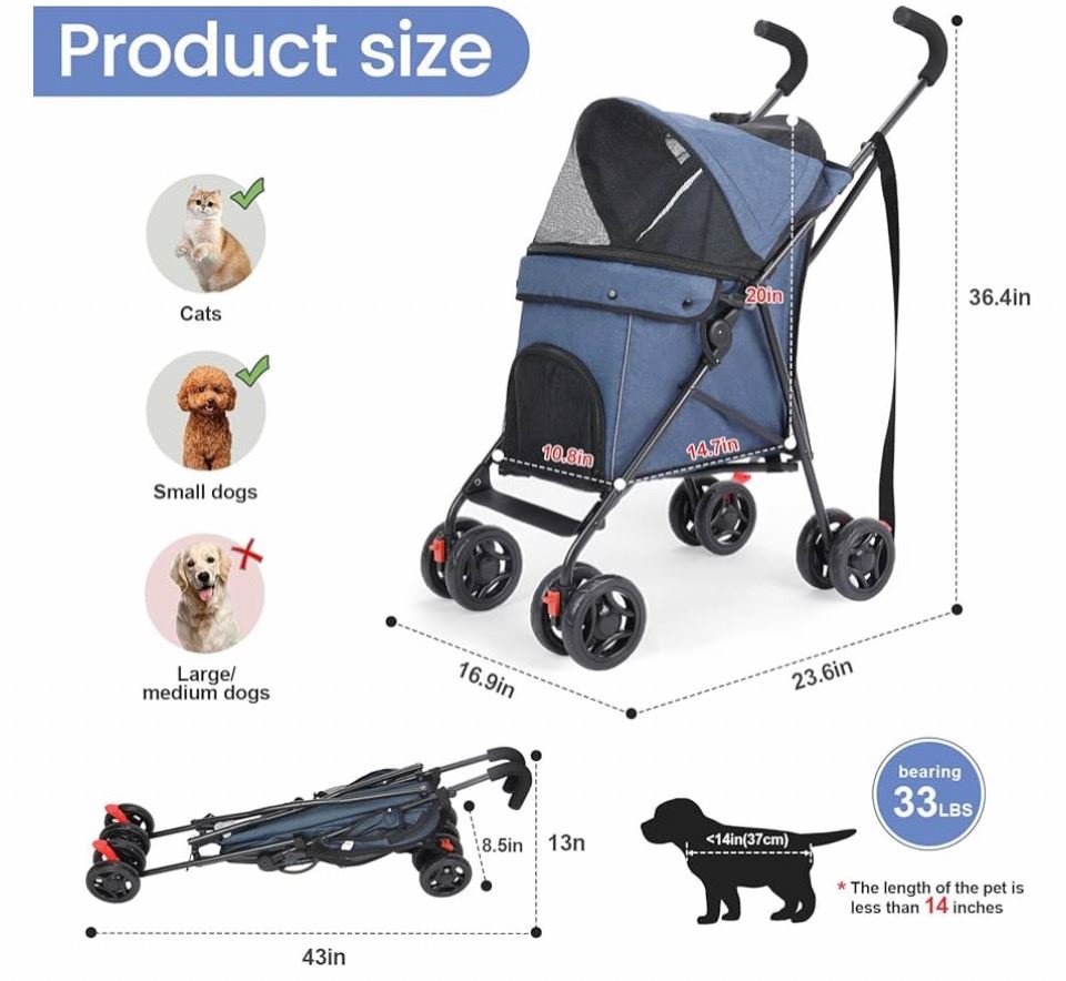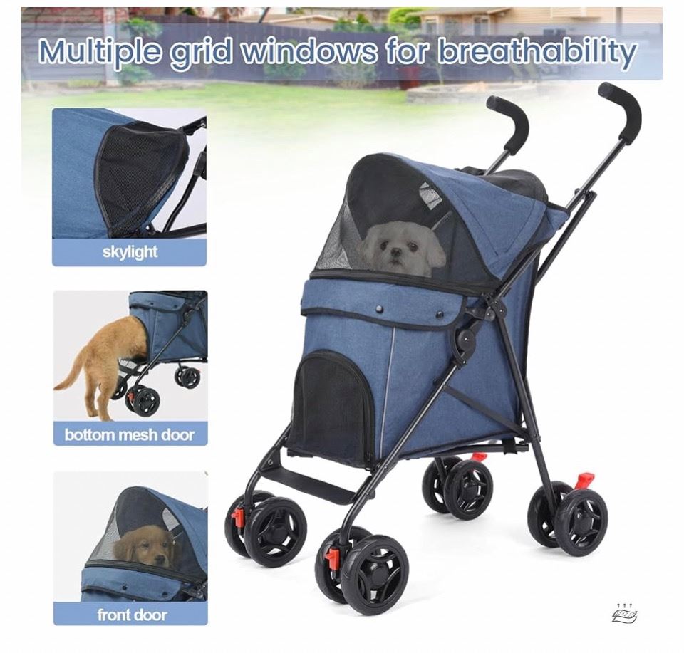 TRAVEL PORTABLE PET STROLLER, 33LBS NAVY BLUE