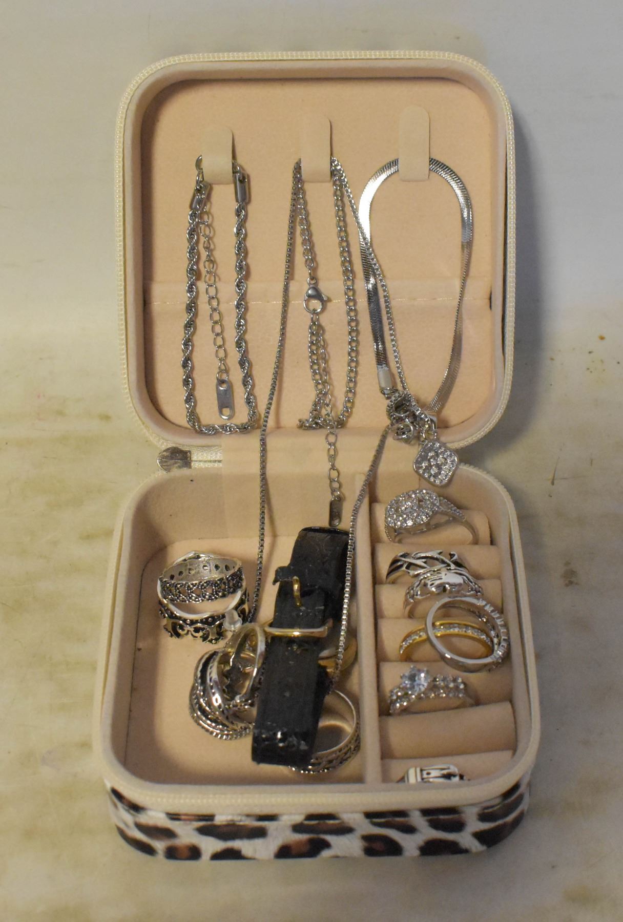 TRAVELING JEWELRY BOX FULL OF JEWELRY