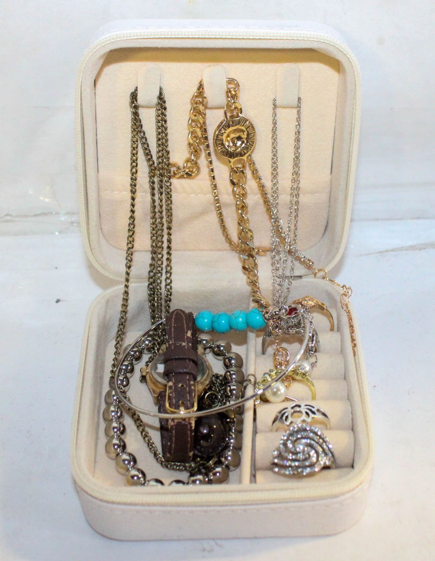 TRAVELING JEWELRY BOX FULL OF JEWELRY
