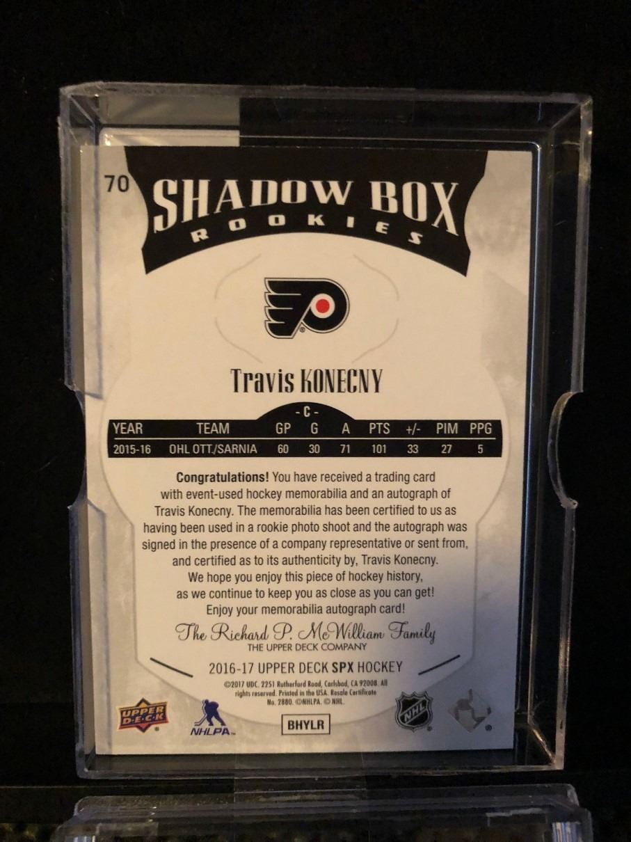 TRAVIS KONECNY 2016-17 SPX SHADOW BOX ROOKIES AUTOGRAPH & GAME WORN JERSEY 79/99