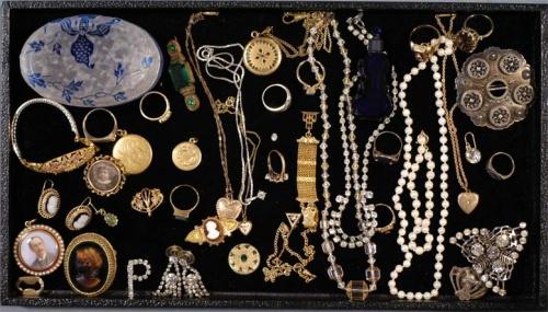 TRAY LOT OF ESTATE JEWELRY including Victorian, gold, pearls and a loose diamond