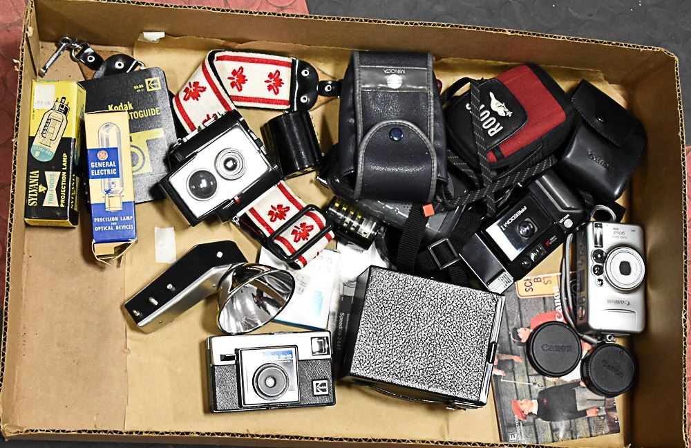 TRAY LOT VINTAGE CAMERAS ASSORTED