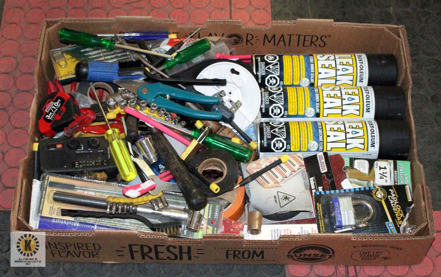 LEAK SEAL, SCREWDRIVERS, TAPE MEASURES & ETC. TOOLS **ALL ITEMS MUST BE REMOVED BY 5PM SATURDAY, MARCH 29TH 2025. ALL REMAINING ITEMS WILL BE SUBJECT TO A $6.00 PER DAY STORAGE CHARGE. ANY ITEMS REMAINING AFTER MONDAY, APRIL 21ST 2025 WILL BE CONSIDERED FORFEITED. NO REFUNDS WILL BE ISSUED FOR FORFEITED ITEMS. TO SCHEDULE A PICK UP APPOINTMENT CLICK HERE