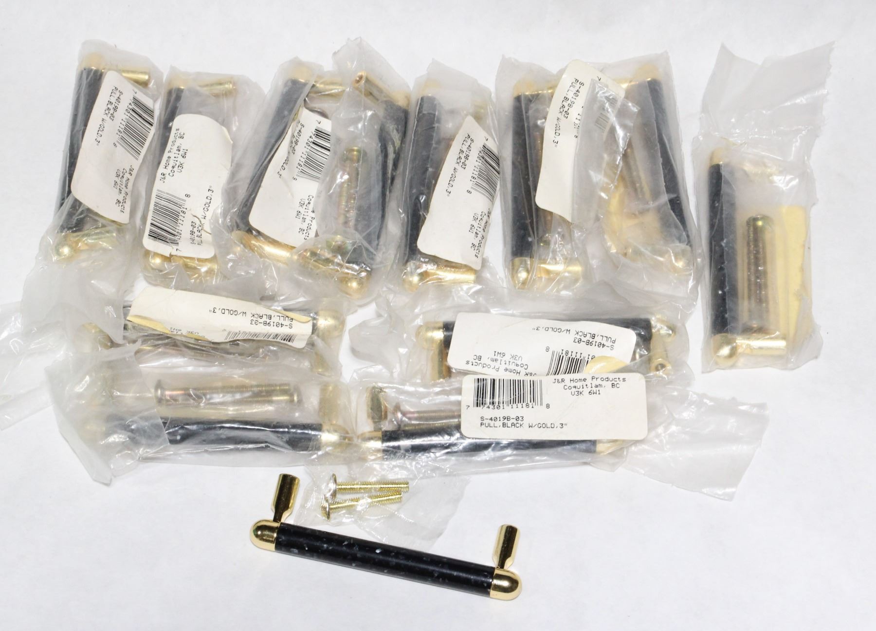 TRAY OF BLACK/ BRASS FINISH CABINET PULLS 3"