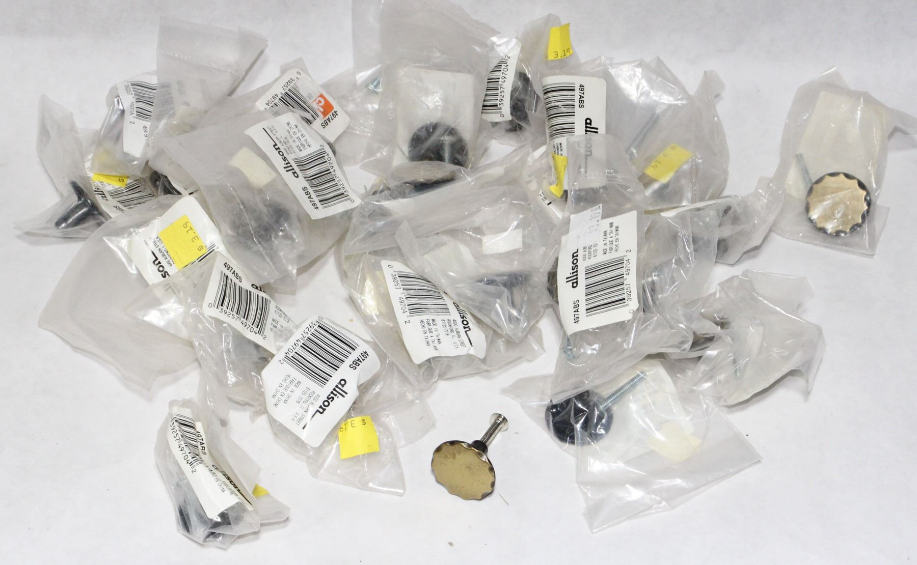 TRAY OF BRASS FINISH CABINET KNOBS MODEL 497ABS