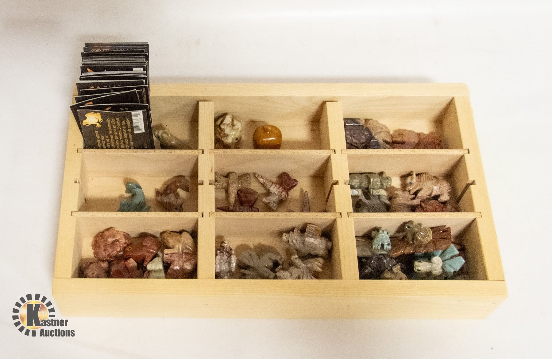 TRAY OF CARVED GEMSTONE ANIMAL FIGURES